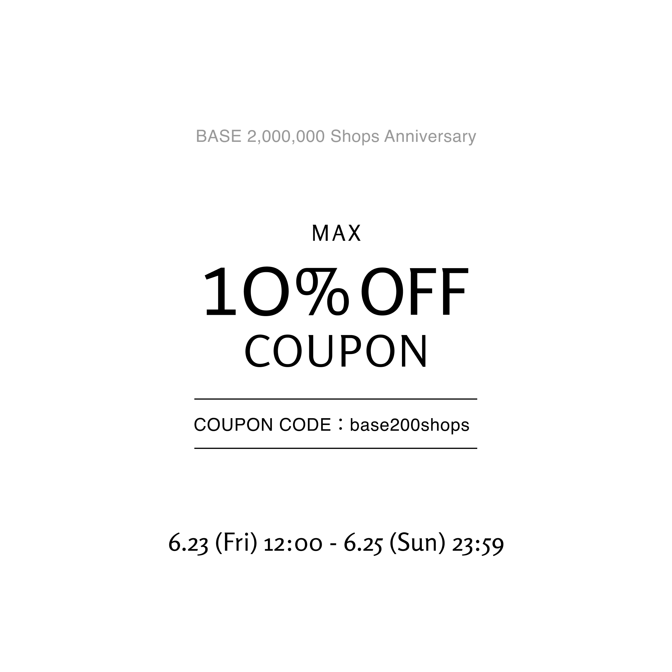 \ BASE 200万ショップ記念 /10%OFFクーポンが発行されました!6/23(金)12:00〜6/25(日)23:59までショップ商品購入画面でクーポンコード《 base200shops 》をご入力でご利用頂けます。注意事項をお読みの...