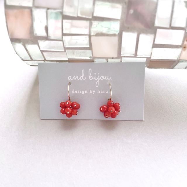 14kgf サルディーニャ珊瑚 ピアス/イヤリング 赤珊瑚 コーラル 天然石 誕生石 赤 ショートピアス ギフト プレゼント