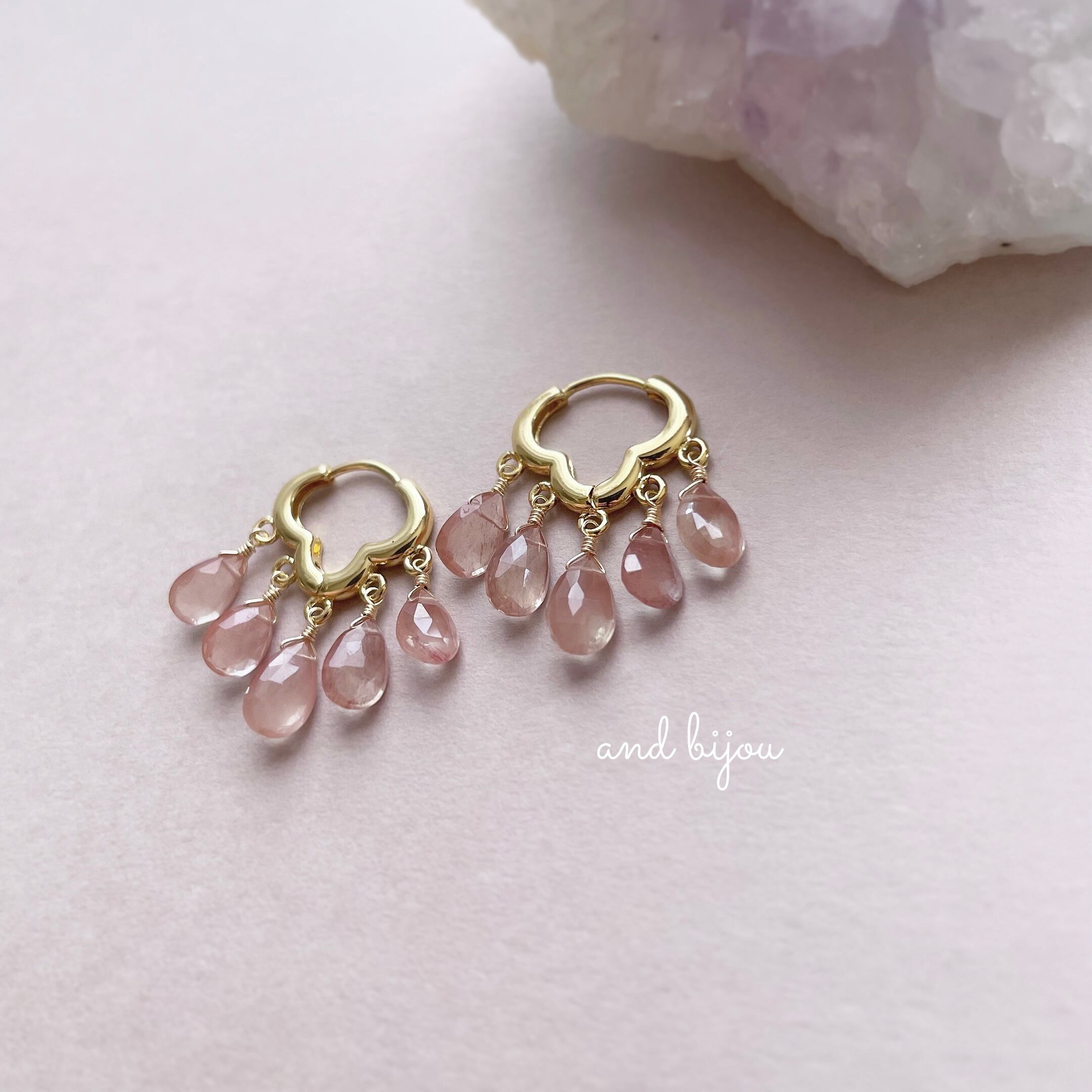 ◆ 素材:ピアス金具18kgp、他14kgf/アンデシン