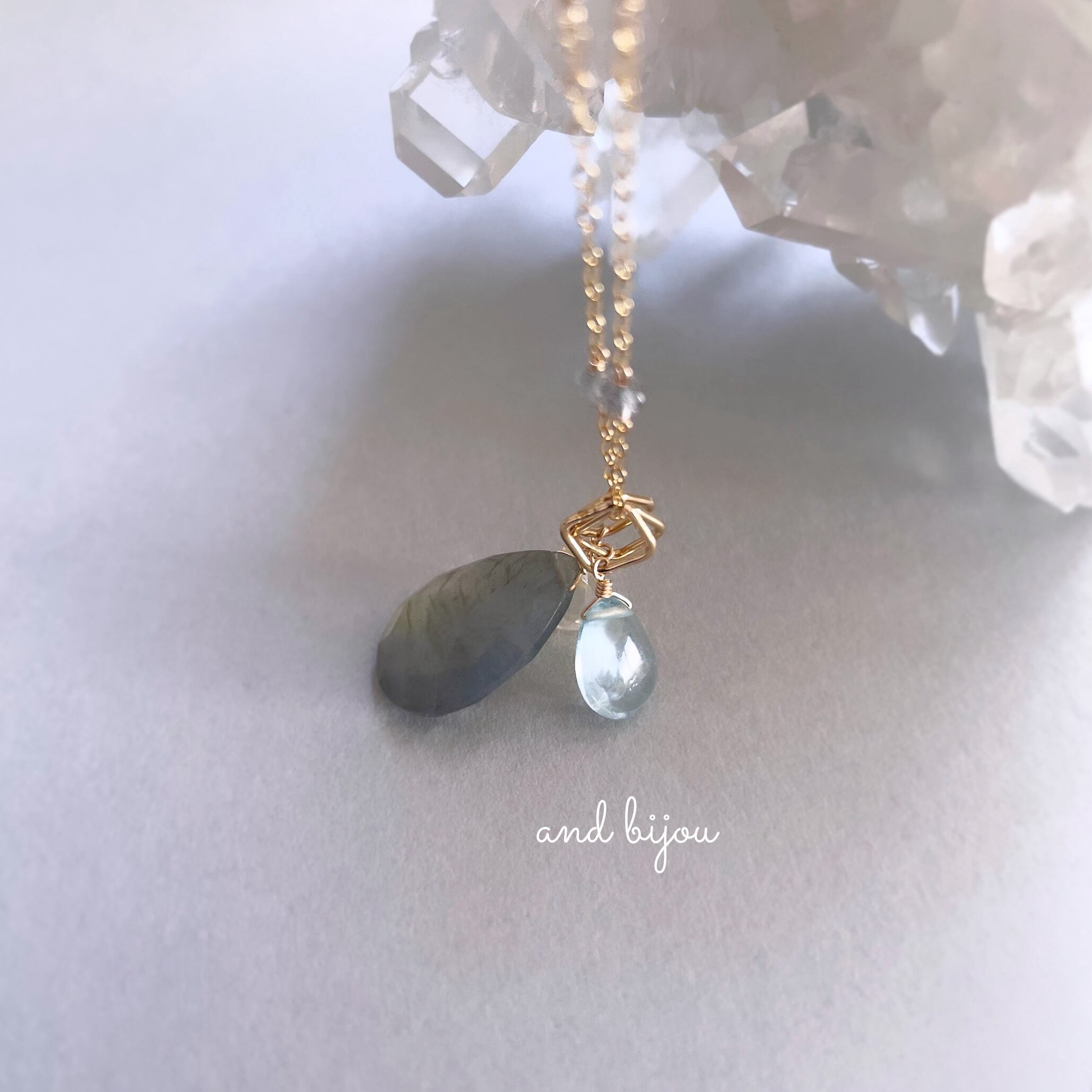 14kgf 天然石チャーム ラブラドライト × アクアマリン × スキャポライト ネックレスチャーム ペンダントトップ ネックレストップ カラーストーン