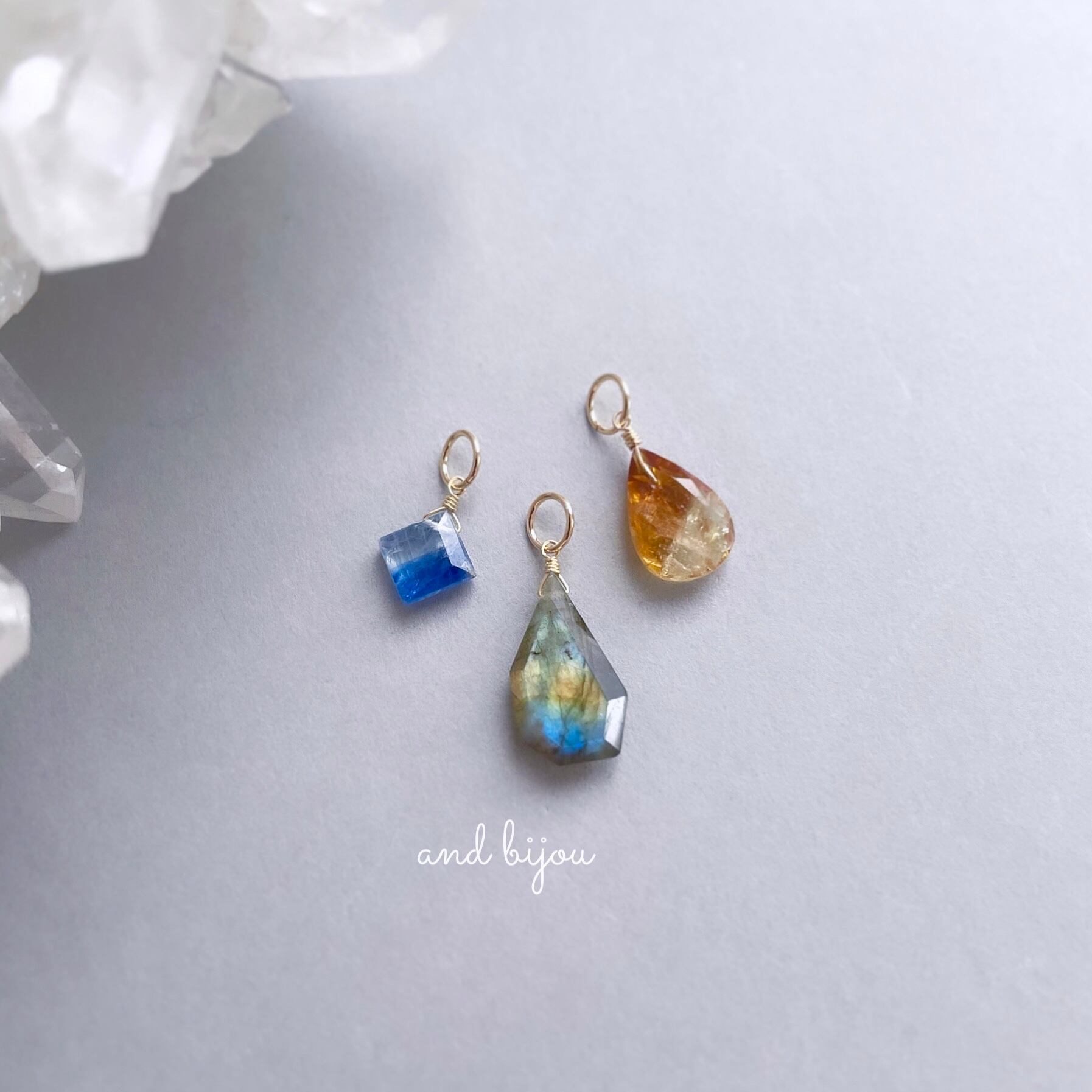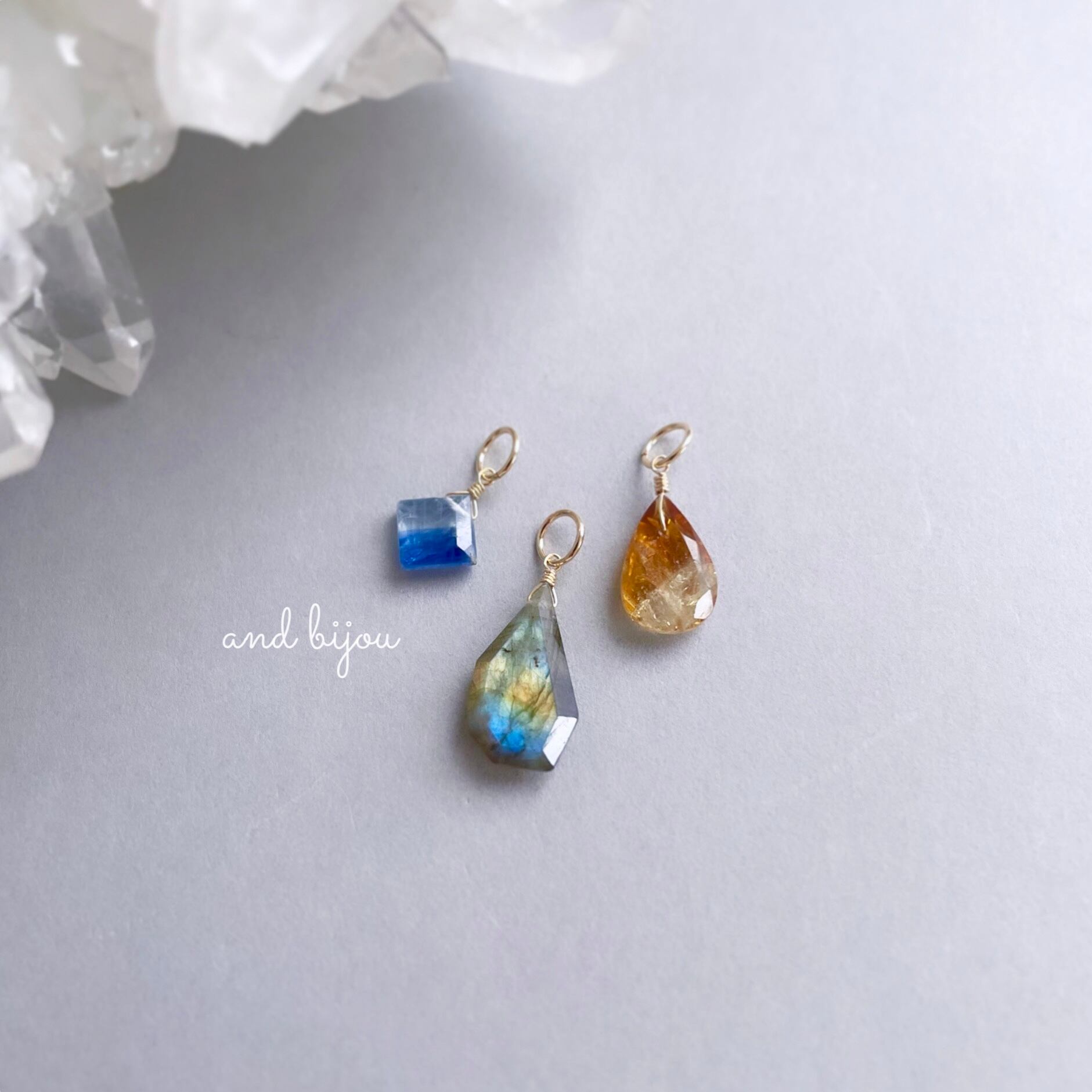 14kgf 天然石チャーム カイヤナイト × ラブラドライト × バイカラーシトリン ネックレスチャーム ペンダントトップ ネックレストップ カラーストーン