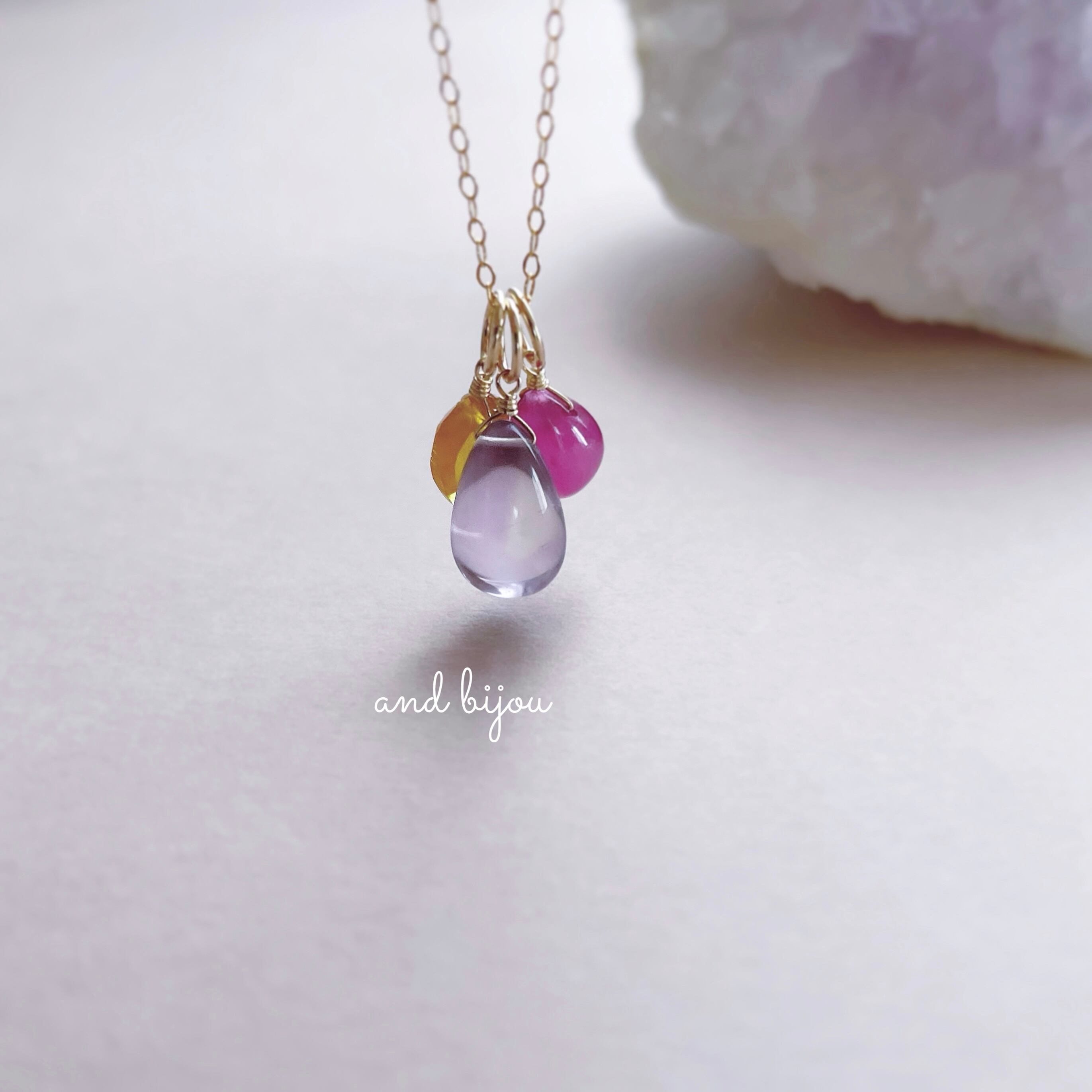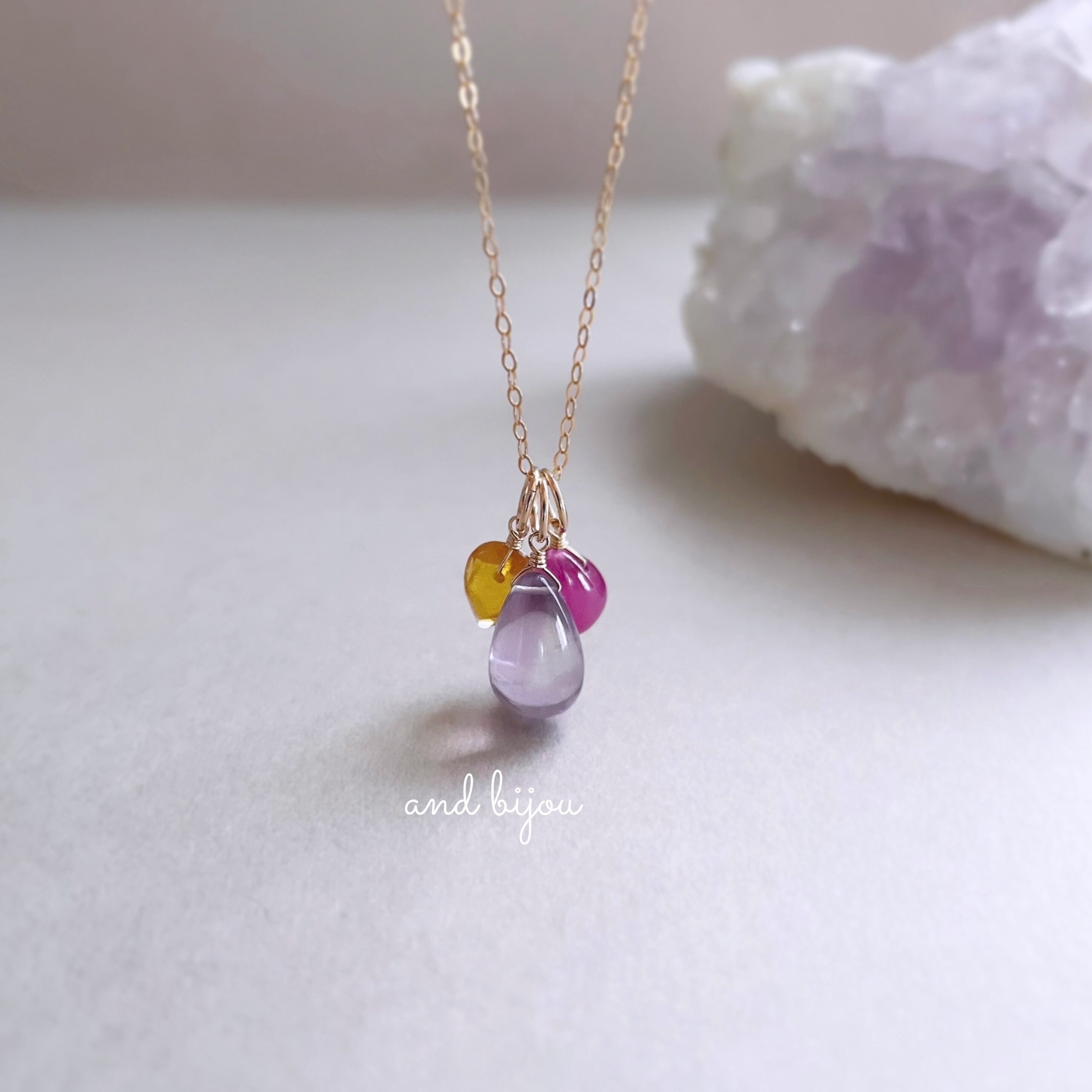 14kgf 天然石チャーム アメジスト × ルビー × イエローサファイア ネックレスチャーム ペンダントトップ ネックレストップ