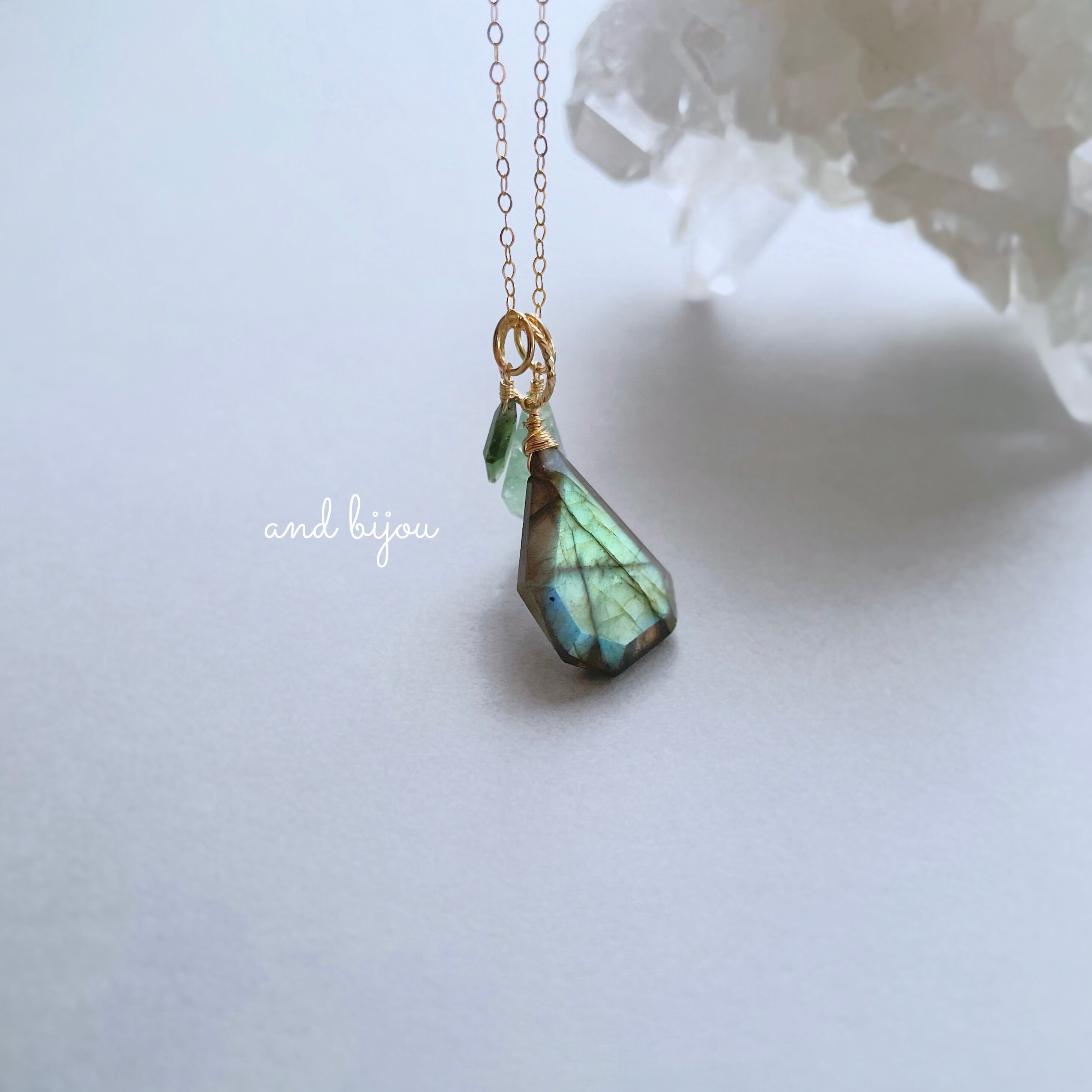 14kgf 天然石チャーム ラブラドライト × グリーントルマリン × グリーンストロベリークォーツ ネックレスチャーム ペンダントトップ ネックレストップ カラーストーン