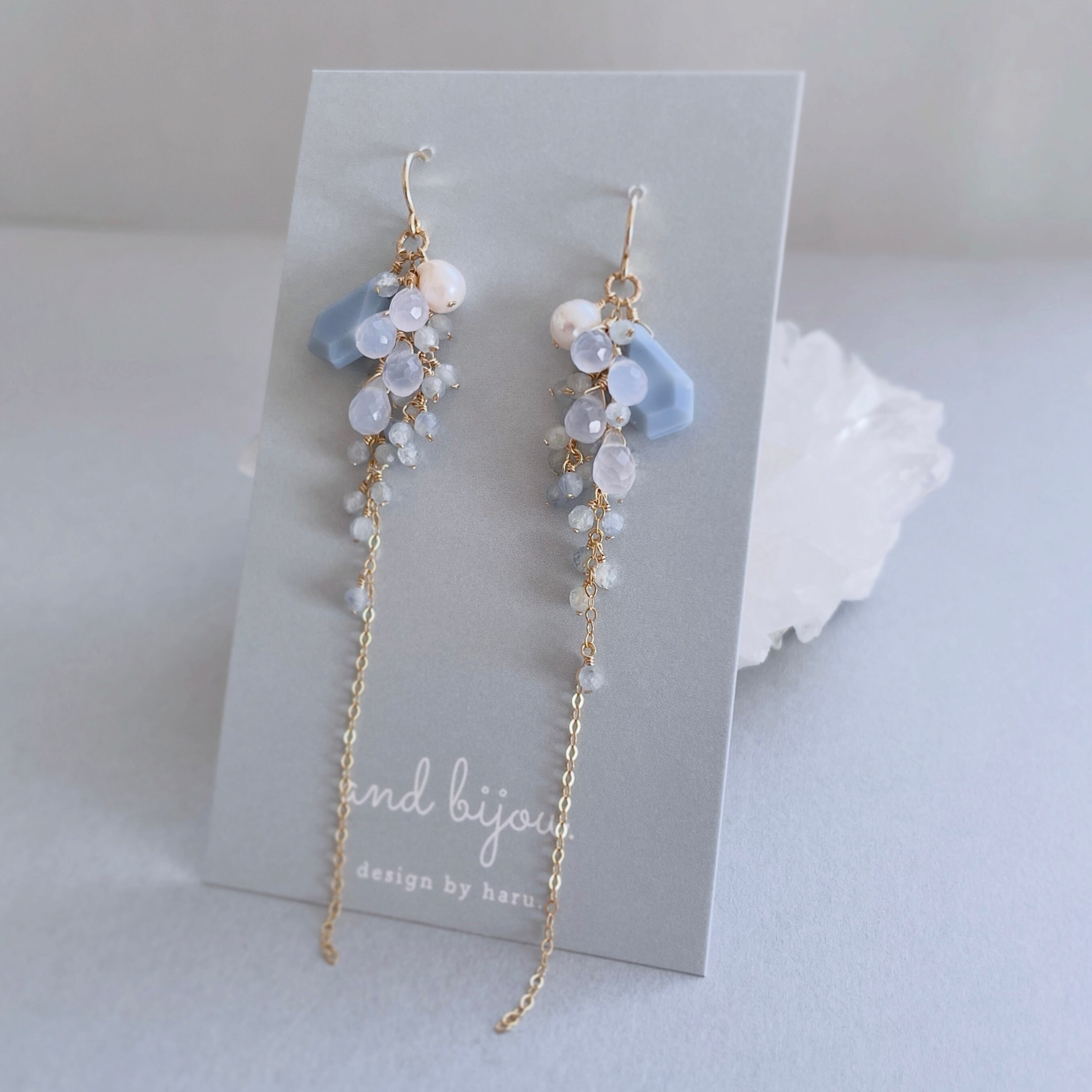◆ 素材:14kgf/ブルーオパール・カルセドニー・カイヤナイト・あこや真珠