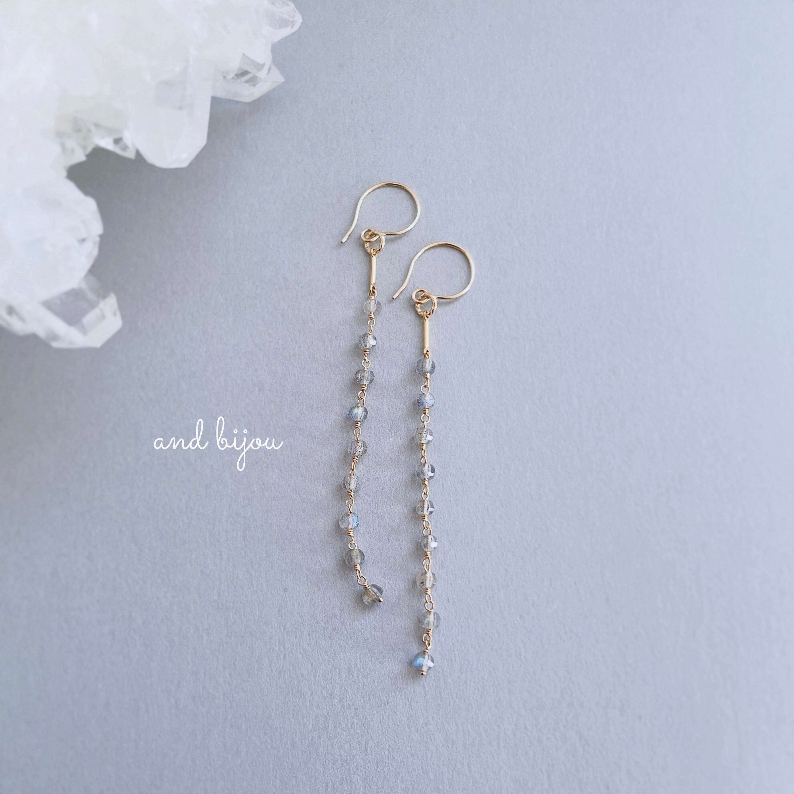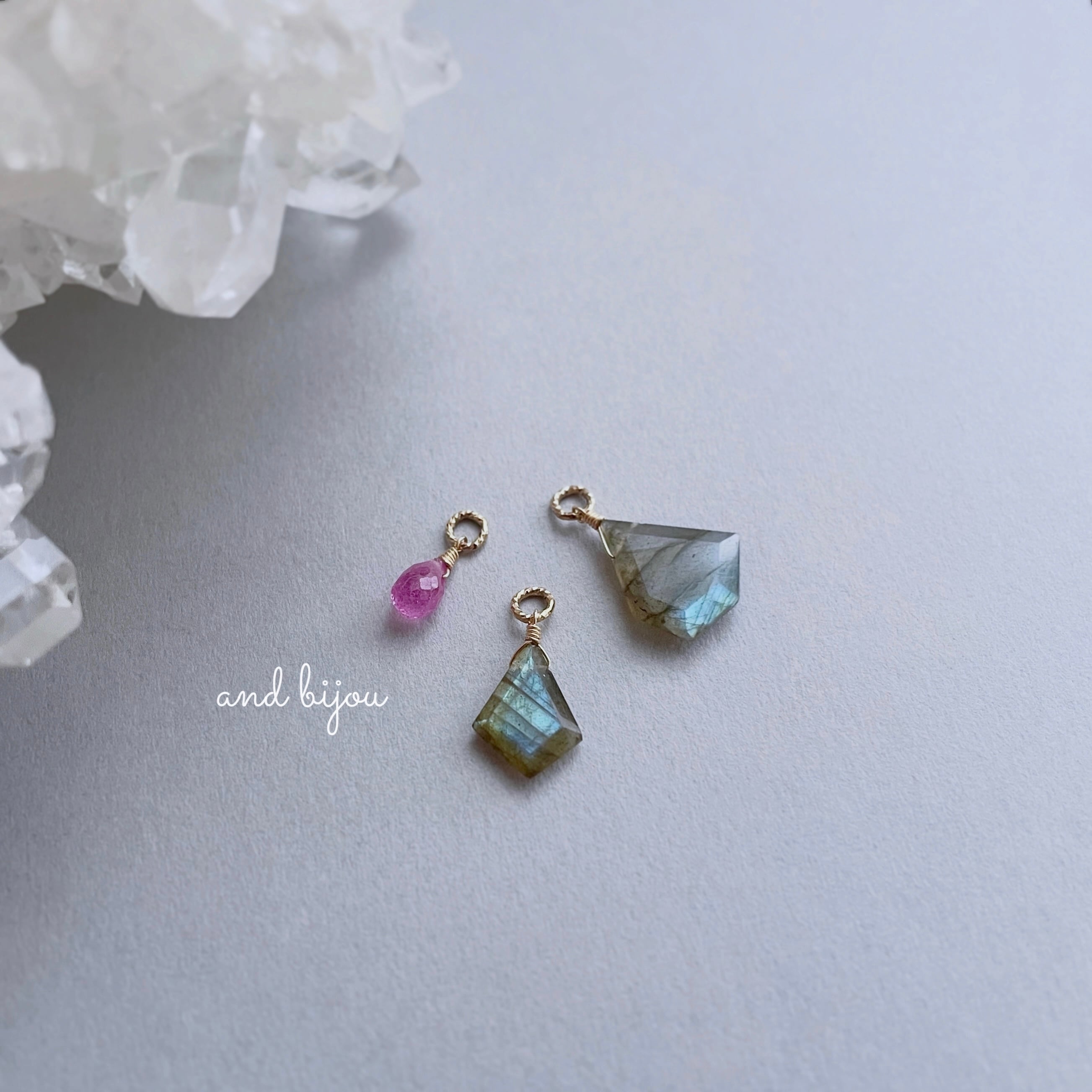 14kgf ラブラドライト × ピンクサファイア ピアス/イヤリング ピアスチャーム 天然石チャーム カラーストーン