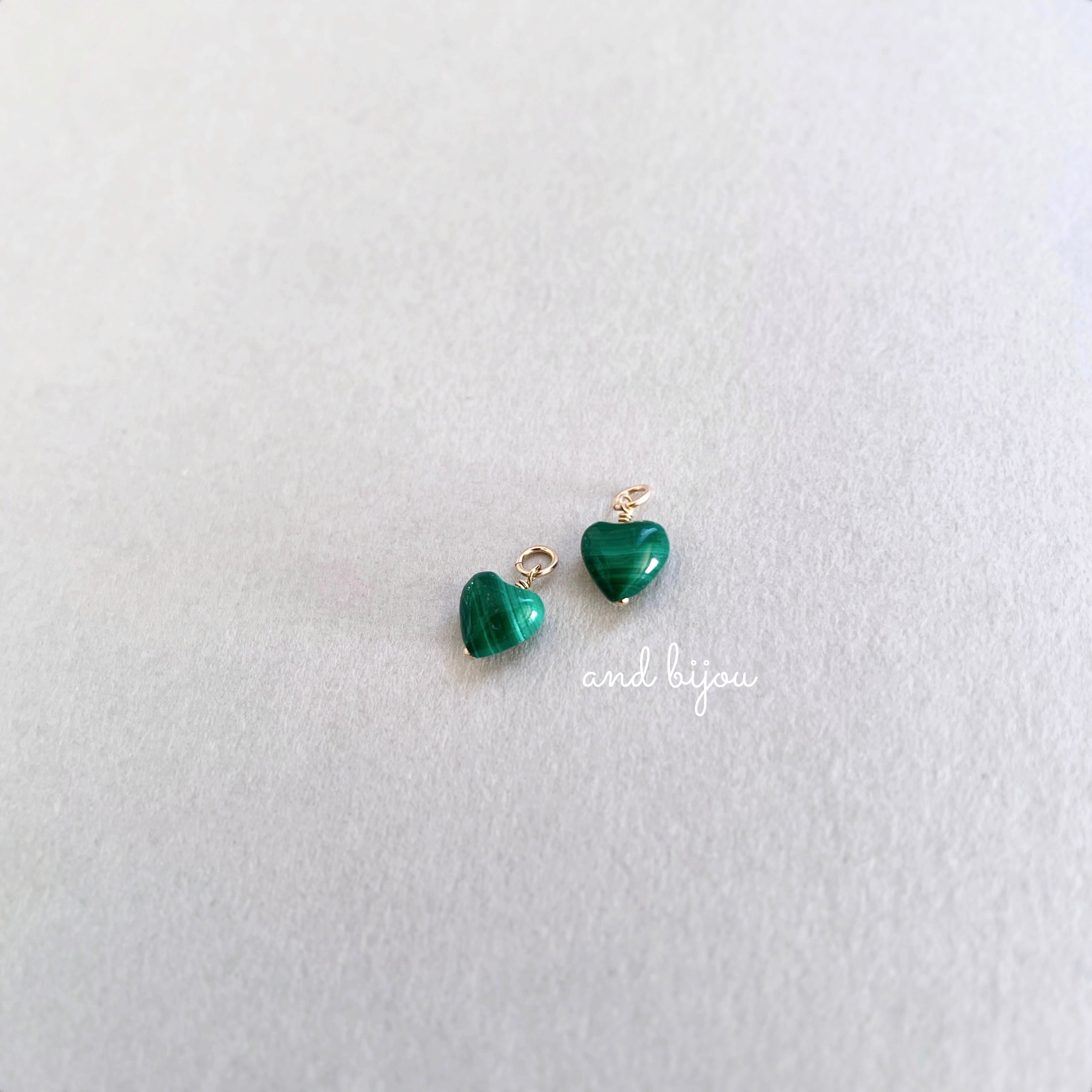 14kgf マラカイト ピアスチャーム 天然石チャーム 孔雀石 色石 カラーストーン ハート グリーン 誕生石 ギフト プレゼント