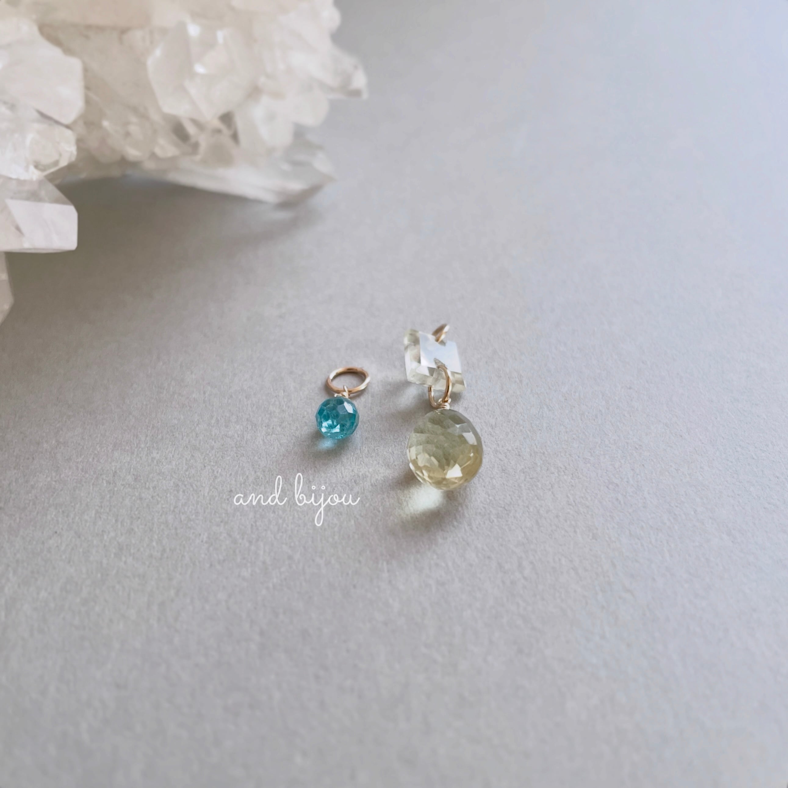 and bijou.では、宝石質やAAA~AA として販売されている石を使用しておりますが、天然が故に欠けやヒビ、内包物が見受けられるものもございます。だからこそ輝き、また 虹が覗く天然石もございます。大きさ、形や色にも1つ1つにございます。天然石の魅力としてご理解お願いいたします。