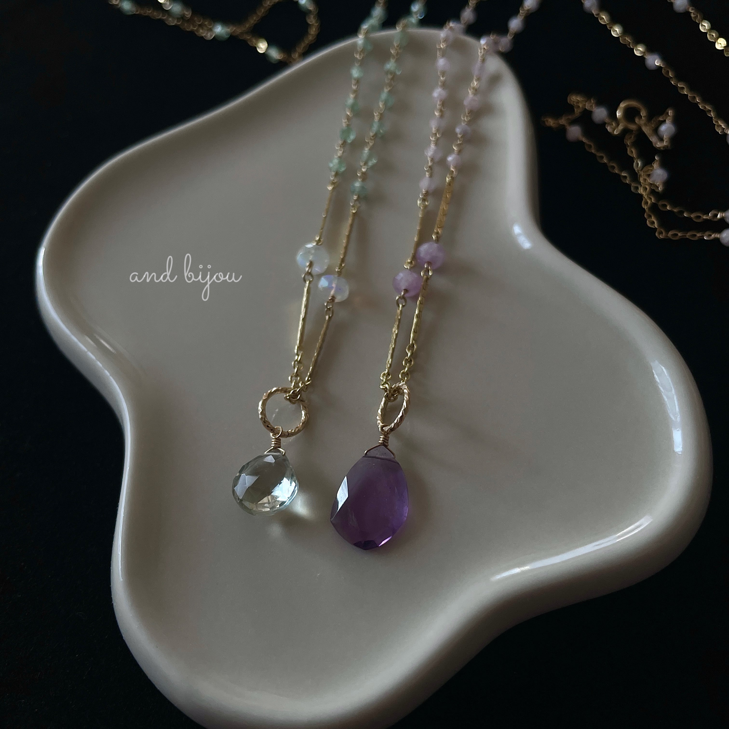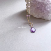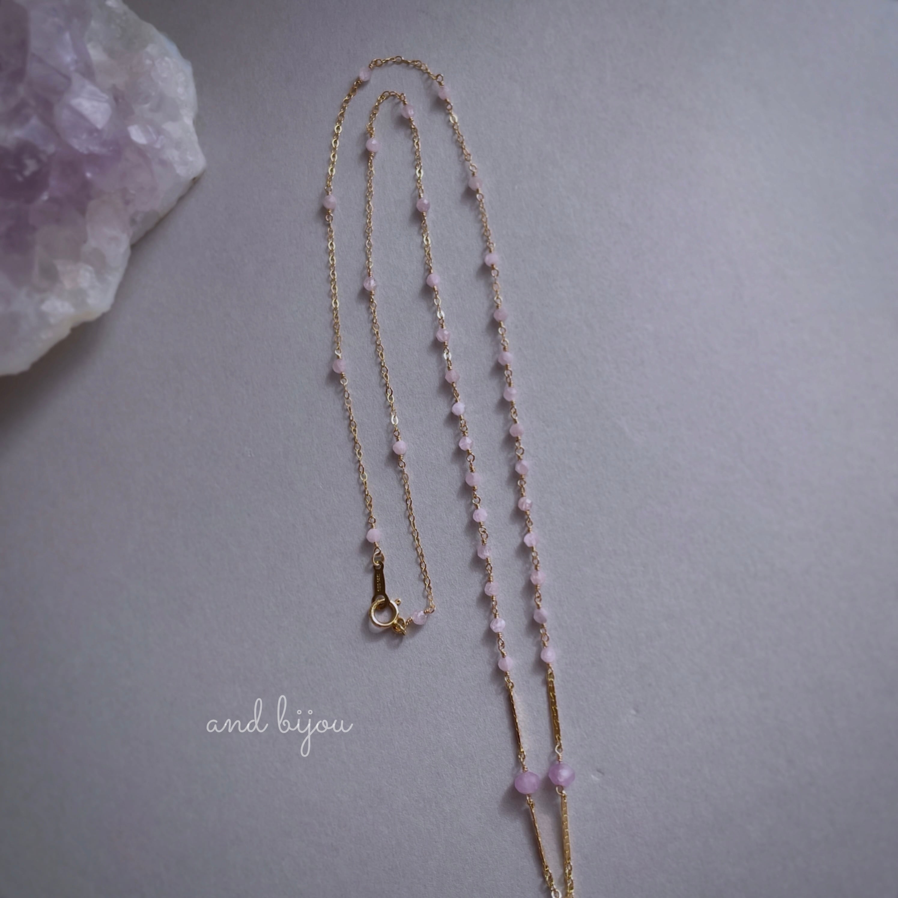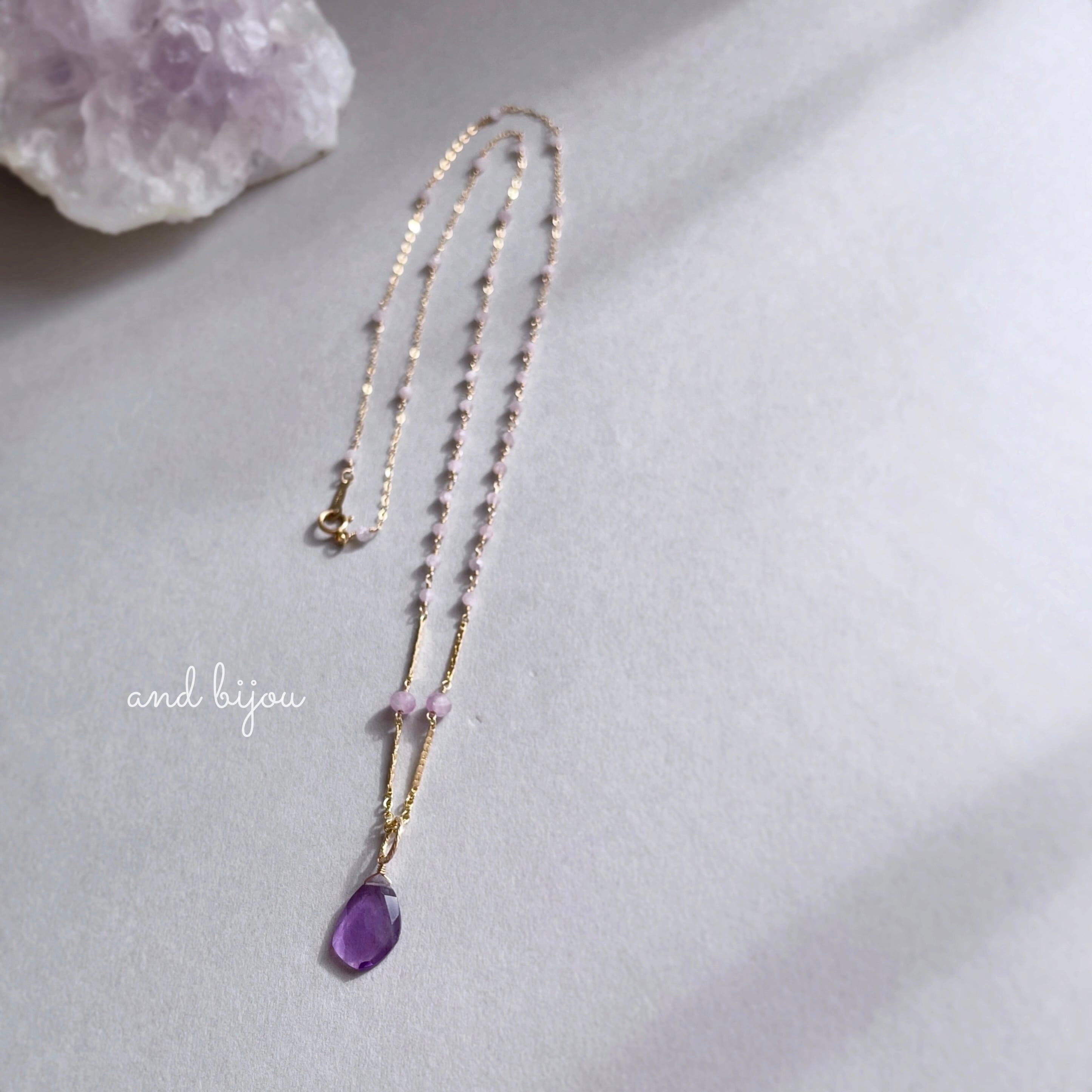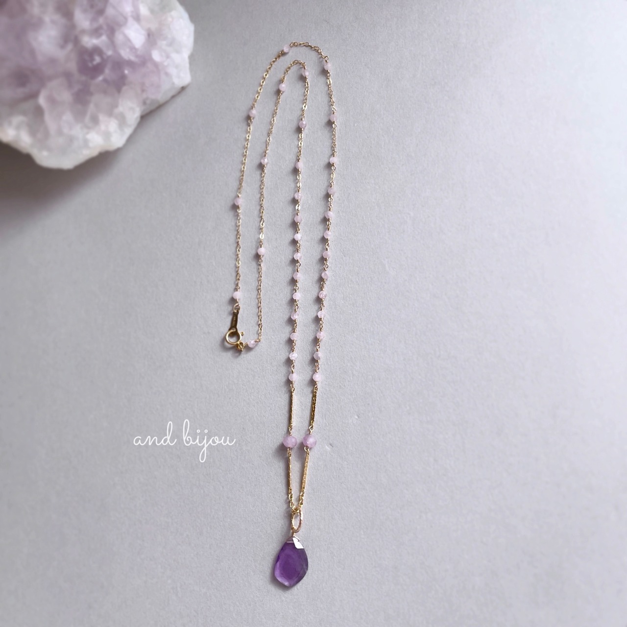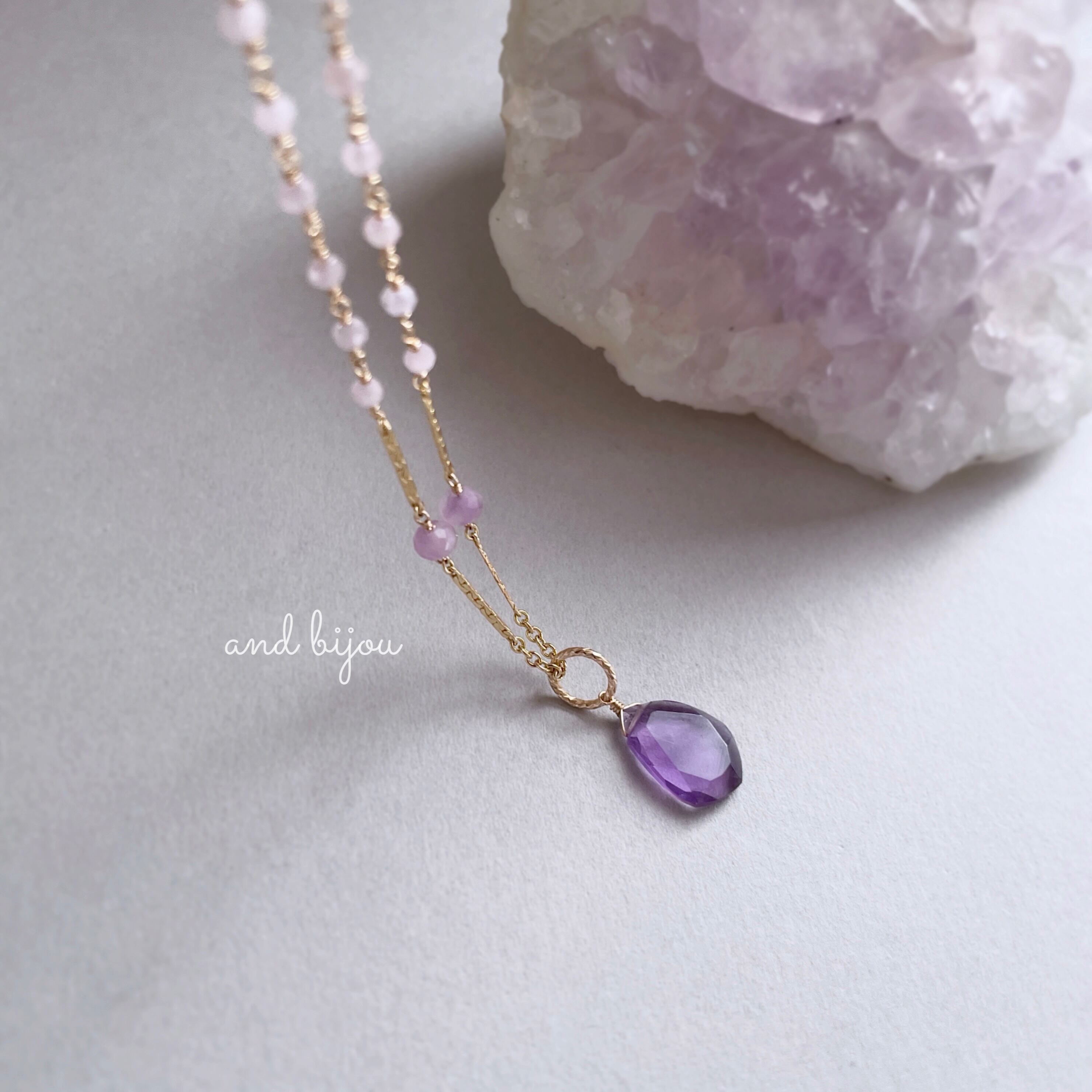 14kgf アメジスト × クンツァイト × チャロアイト ステーションネックレス 天然石ネックレス カラーストーン 色石 誕生石 天然石チャーム ネックレスチャーム くすみピンク 華奢ネックレス ロングネックレス