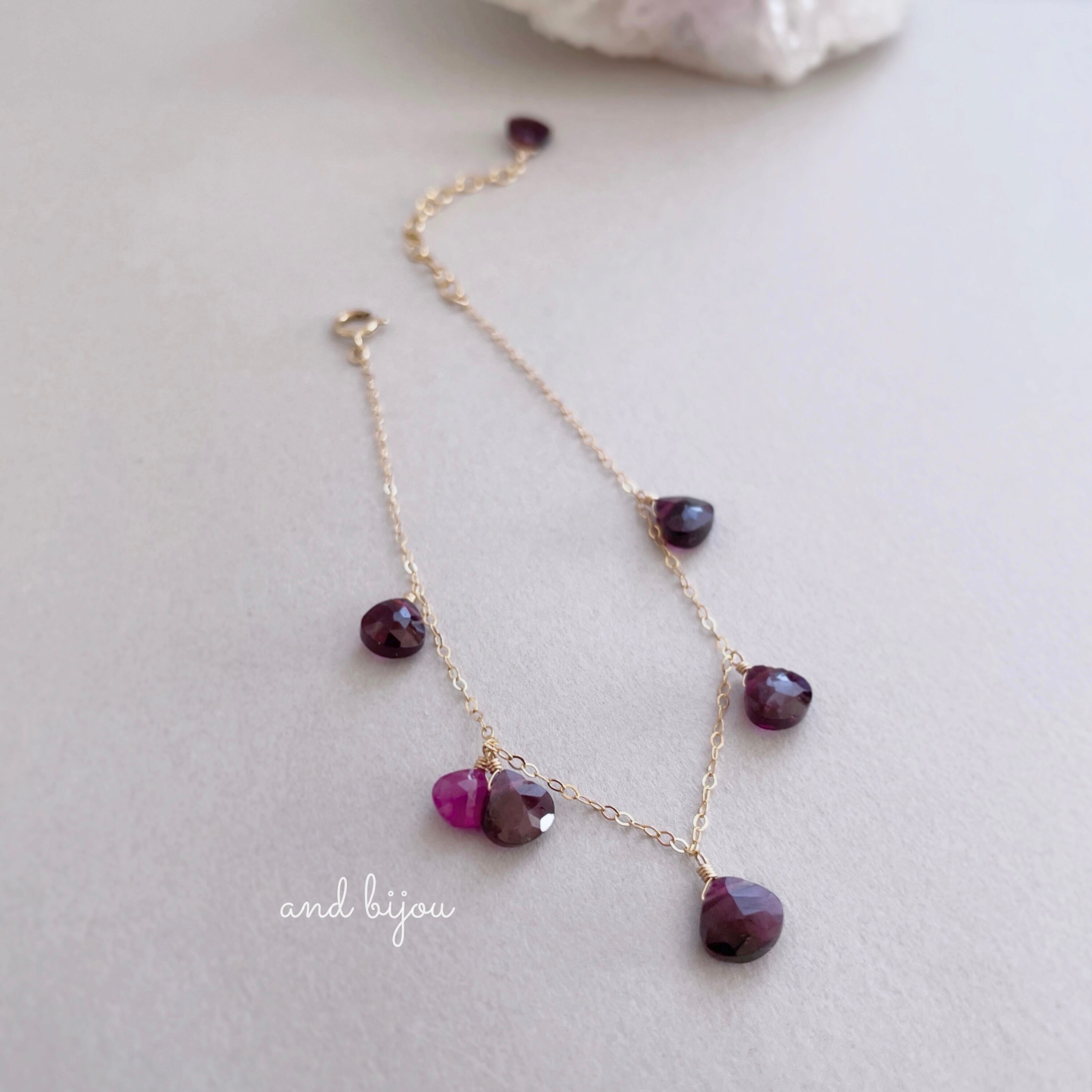 14kgf ガーネット × ルビー ブレスレット 天然石 誕生石 カラーストーン 色石 天然石 ブレスレット 華奢ブレスレット ゴールドフィルド