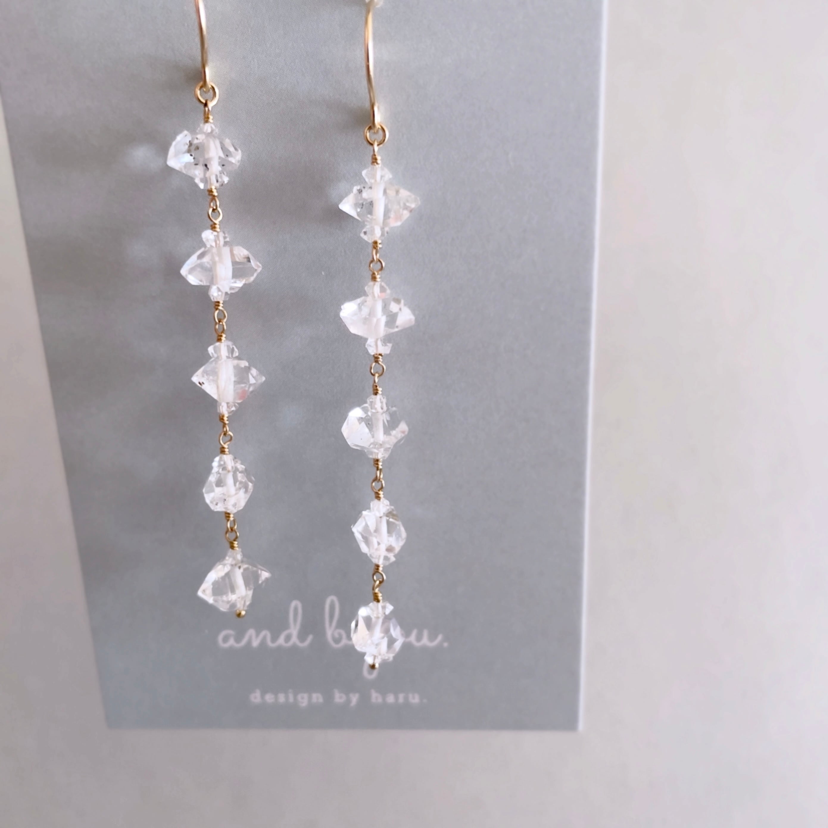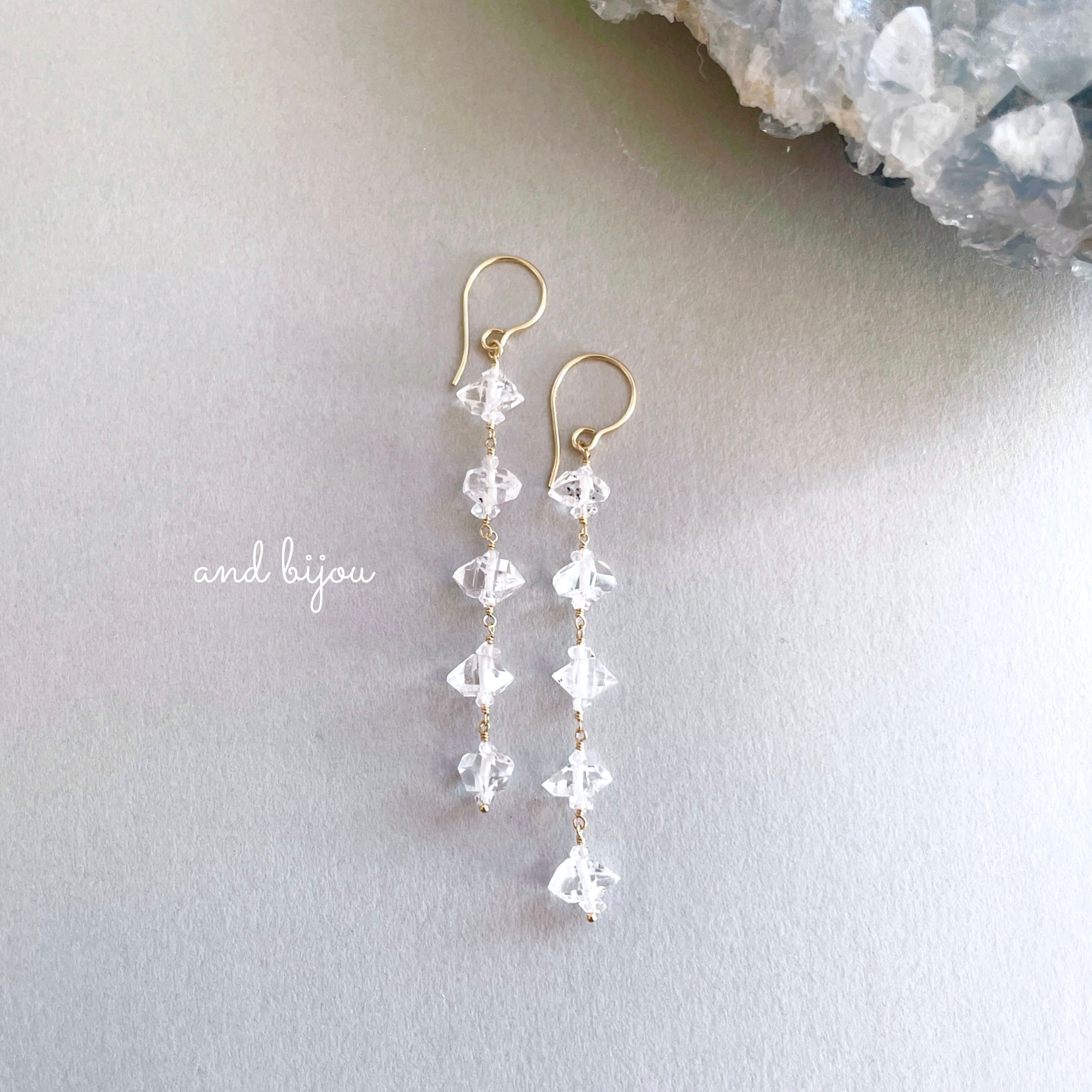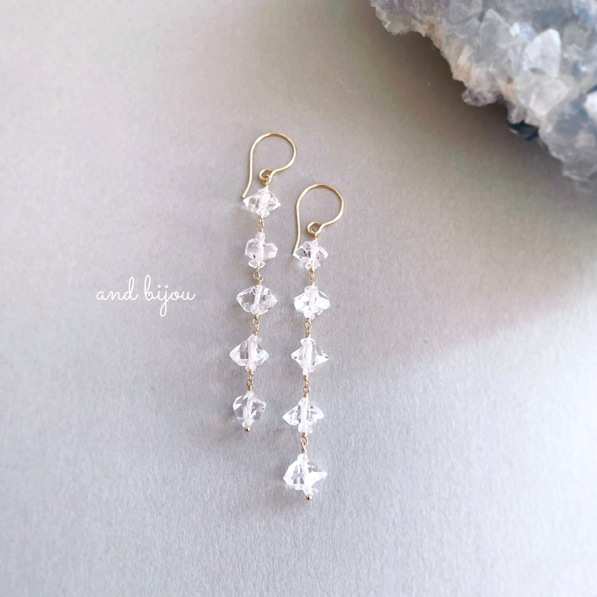 14kgf ハーキマーダイヤモンド ピアス/イヤリング 天然石 誕生石 色石 カラーストーン 水晶 両剣水晶 ダブルポイントクリスタル