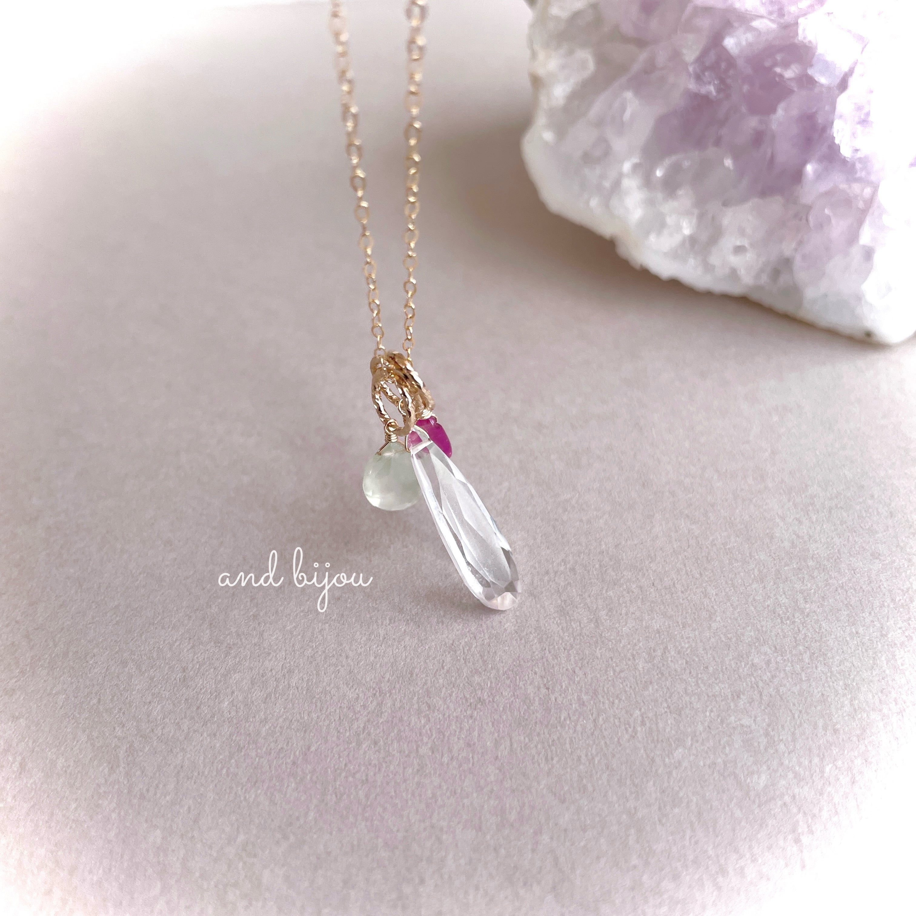 ◆ 素材:14kgf/水晶・ルビー・プレナイト