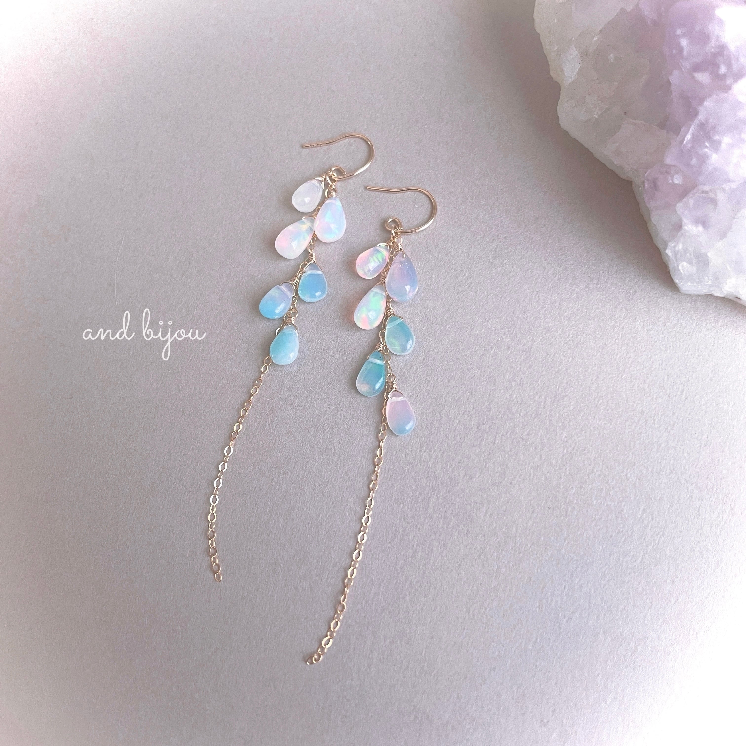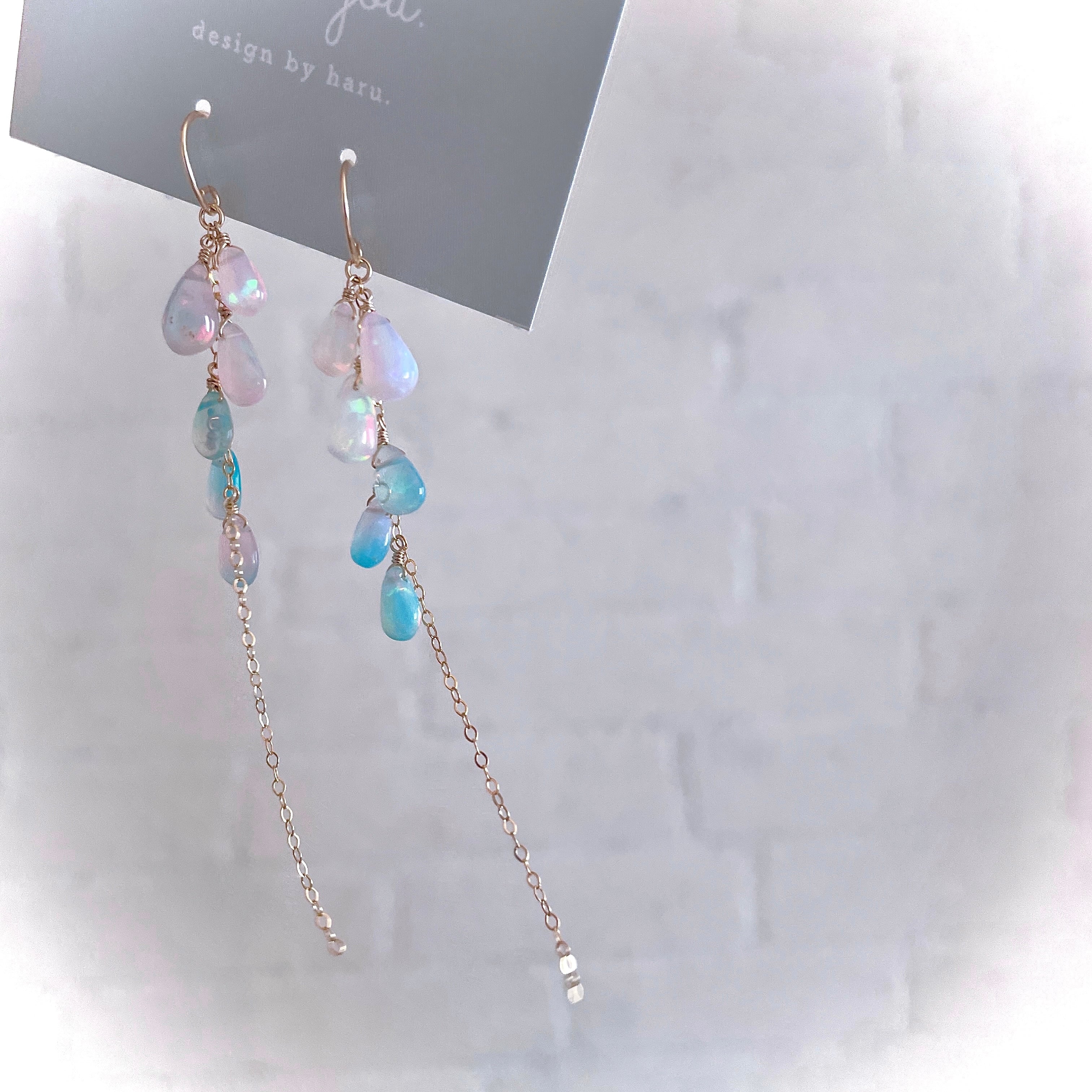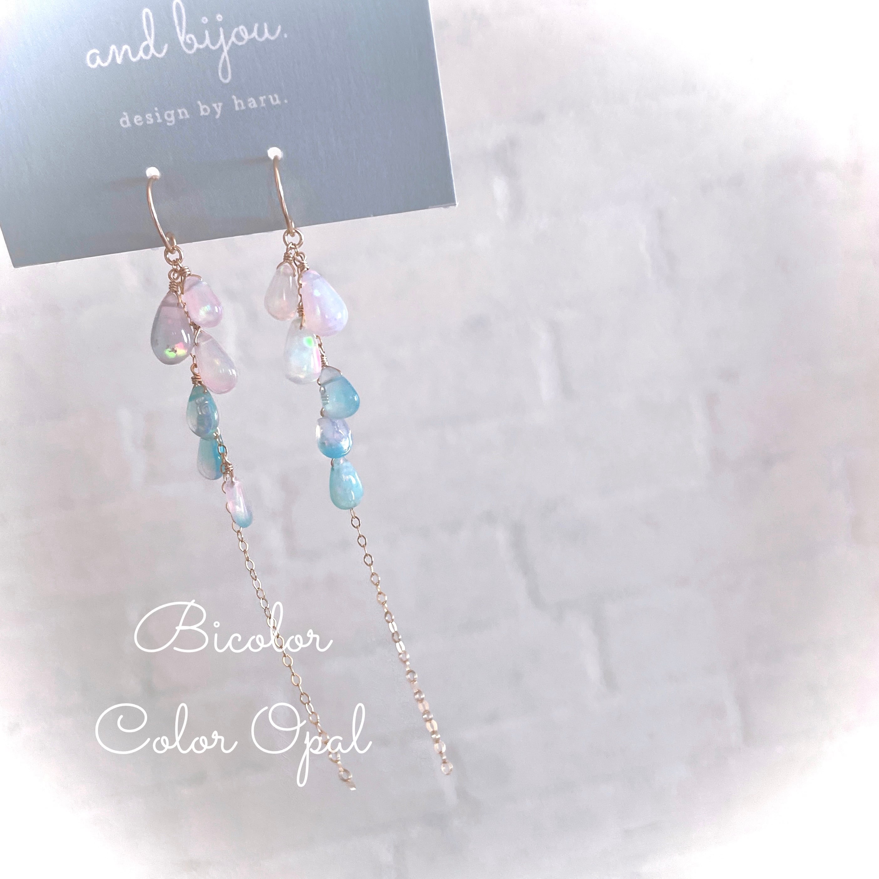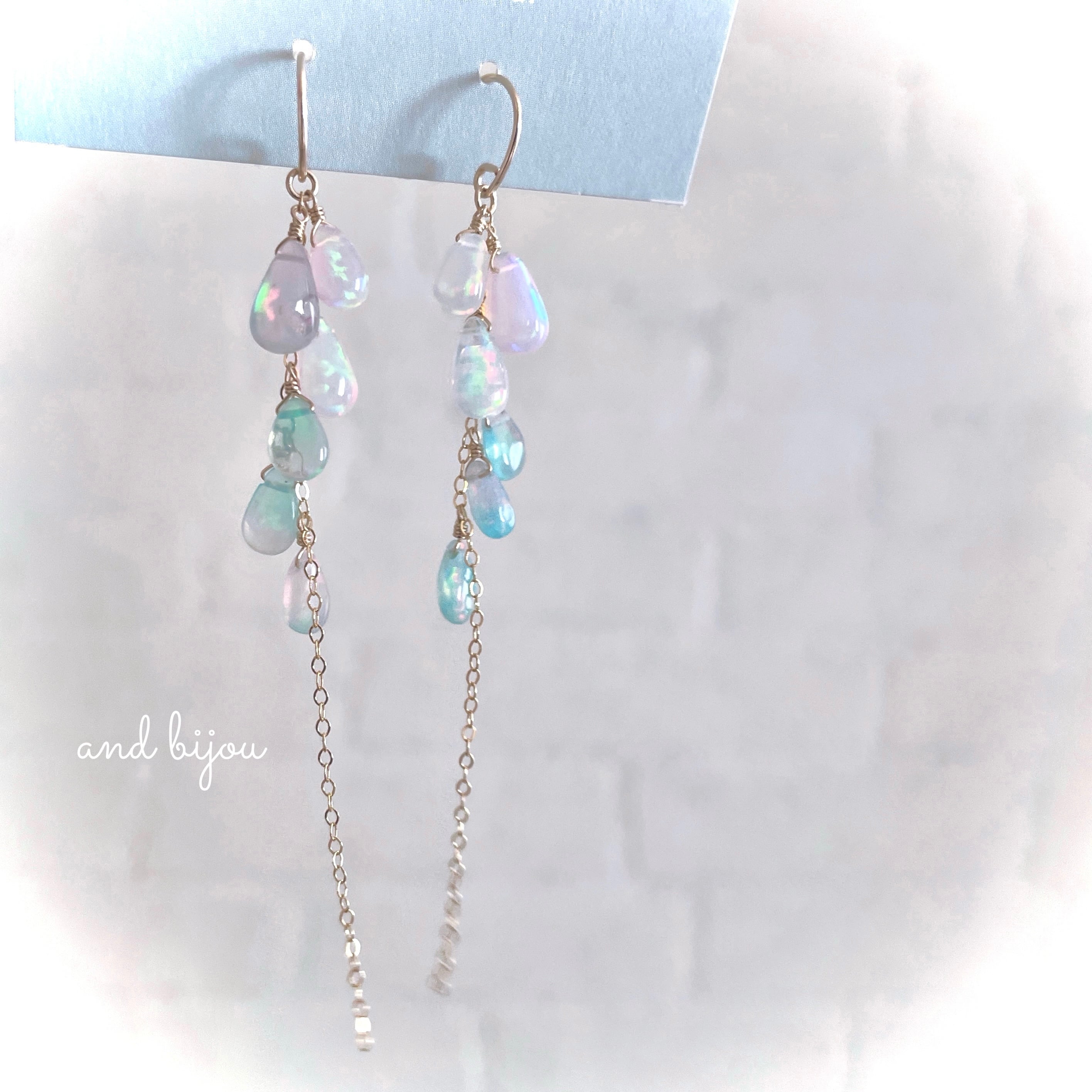 14kgf カラーオパール ピアス/イヤリング 天然石 誕生石 色石 カラーストーン ロングピアス 遊色