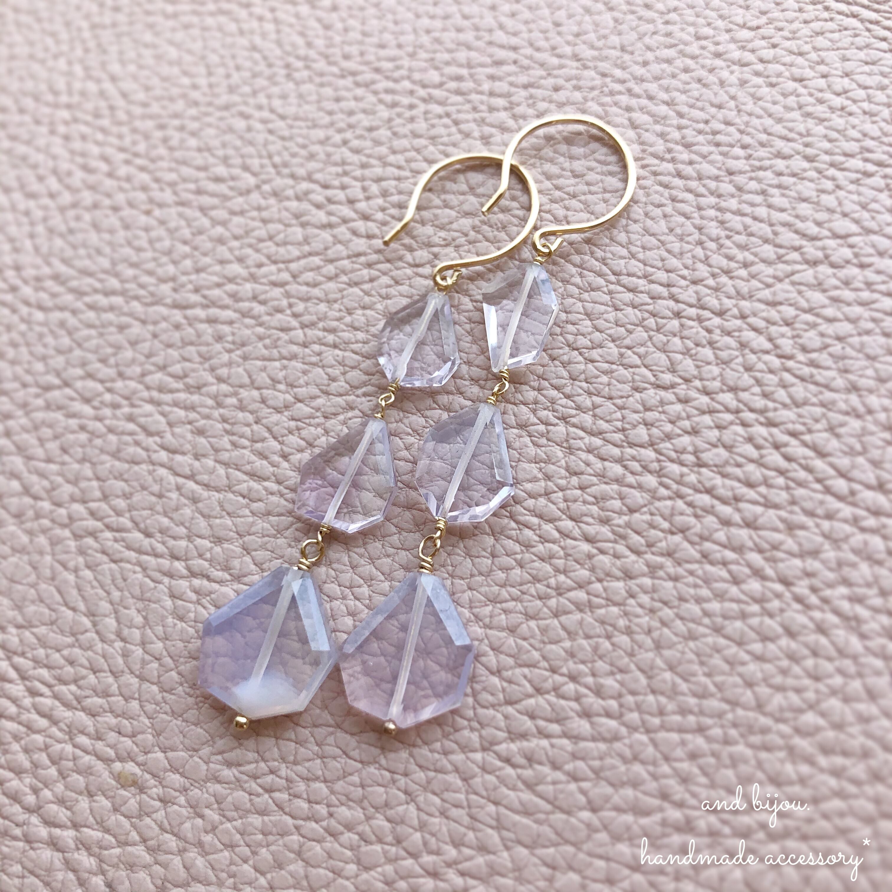 and bijou.では、宝石質やAAA~AA として販売されている石を使用しておりますが、天然が故に欠けやヒビ、内包物が見受けられるものもございます。だからこそ輝き、また 虹が覗く天然石もございます。大きさ、形や色にも1つ1つにございます。天然石の魅力としてご理解お願いいたします。