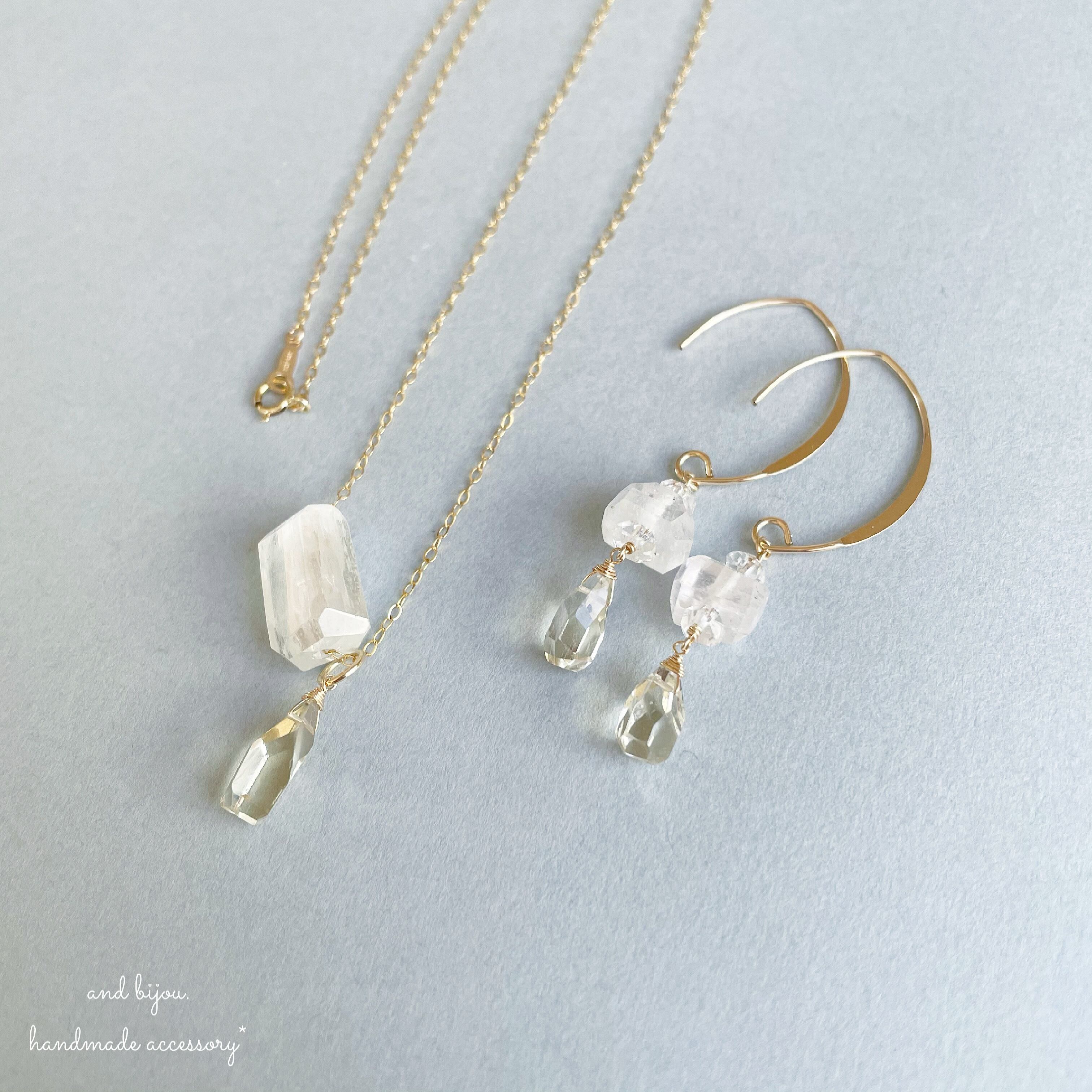 and bijou.では、宝石質やAAA~AA として販売されている石を使用しておりますが、天然が故に欠けやヒビ、内包物が見受けられるものもございます。だからこそ輝き、また 虹が覗く天然石もございます。大きさ、形や色にも1つ1つにございます。天然石の魅力としてご理解お願いいたします。