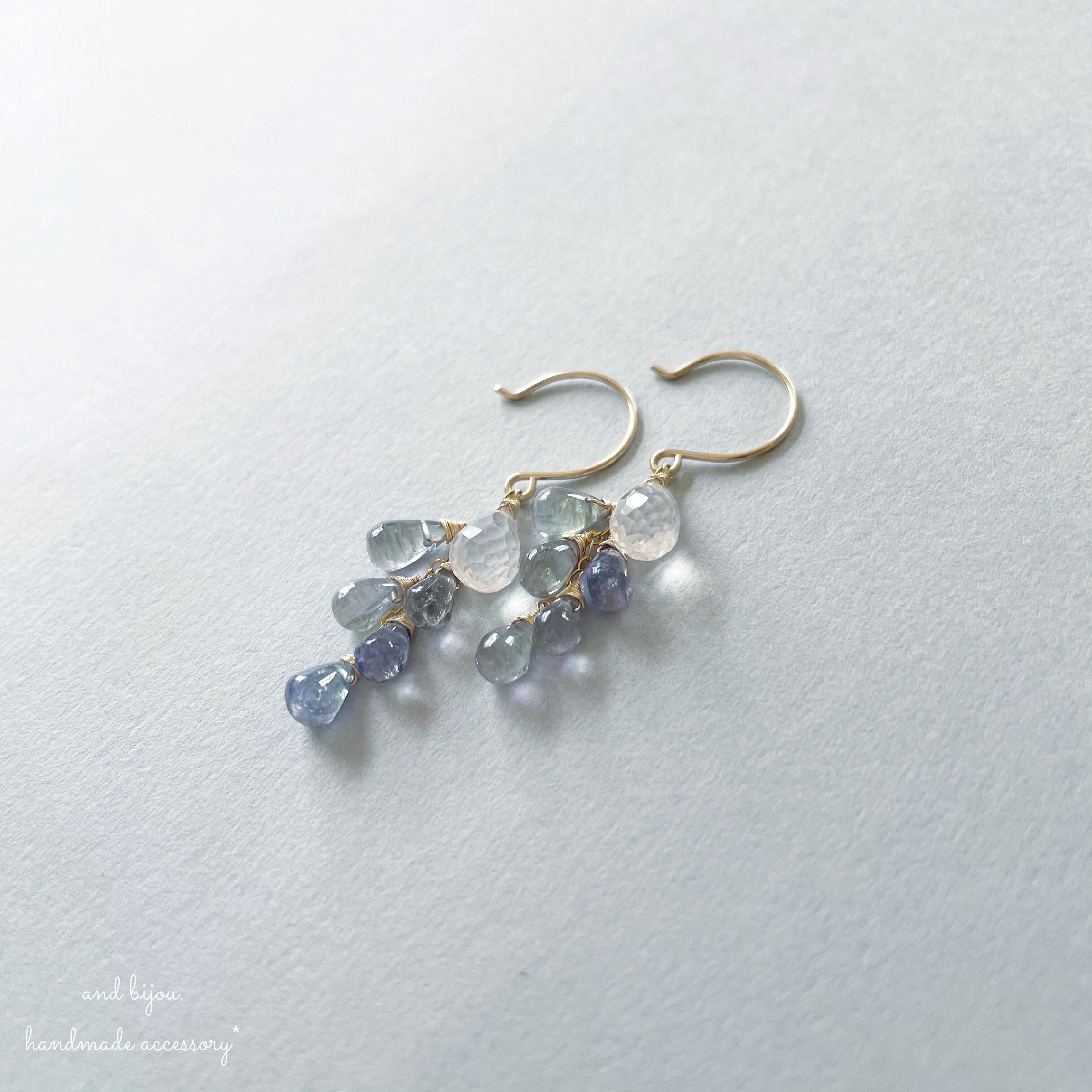 こちらは半透明な乳白色のアイスクォーツと合わせた、すっきりとしたしゃらしゃらピアスです。