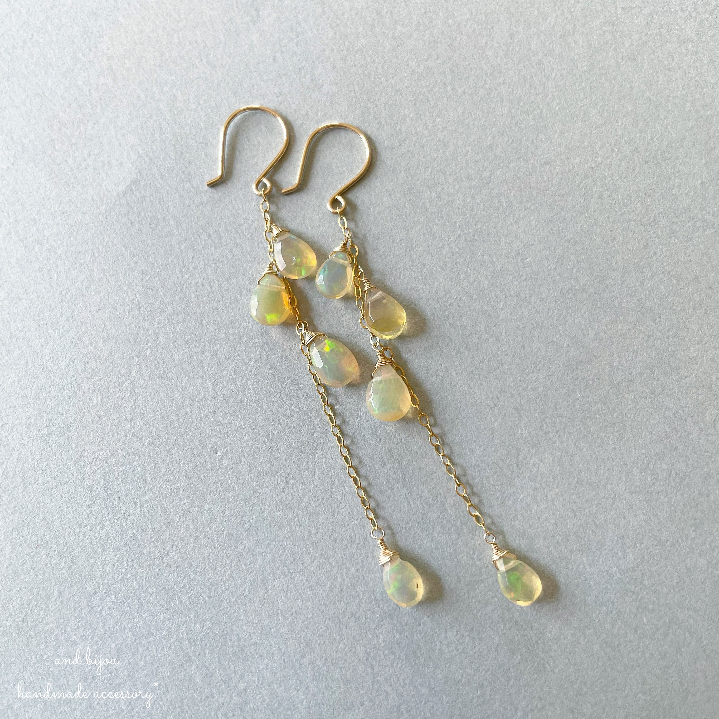 レモンイエロー?クリームイエロー?なイエローカラーが可愛いオパールのピアス。