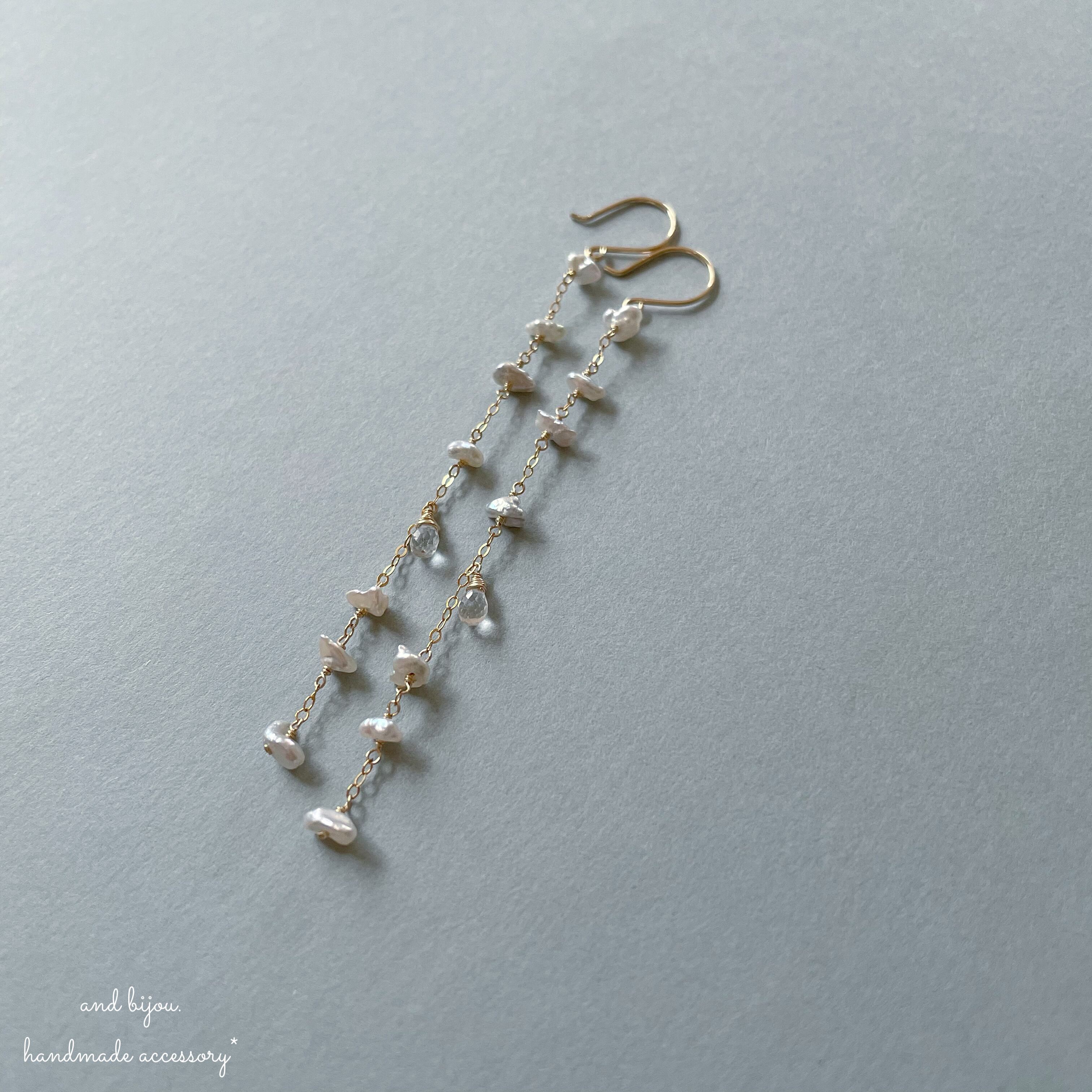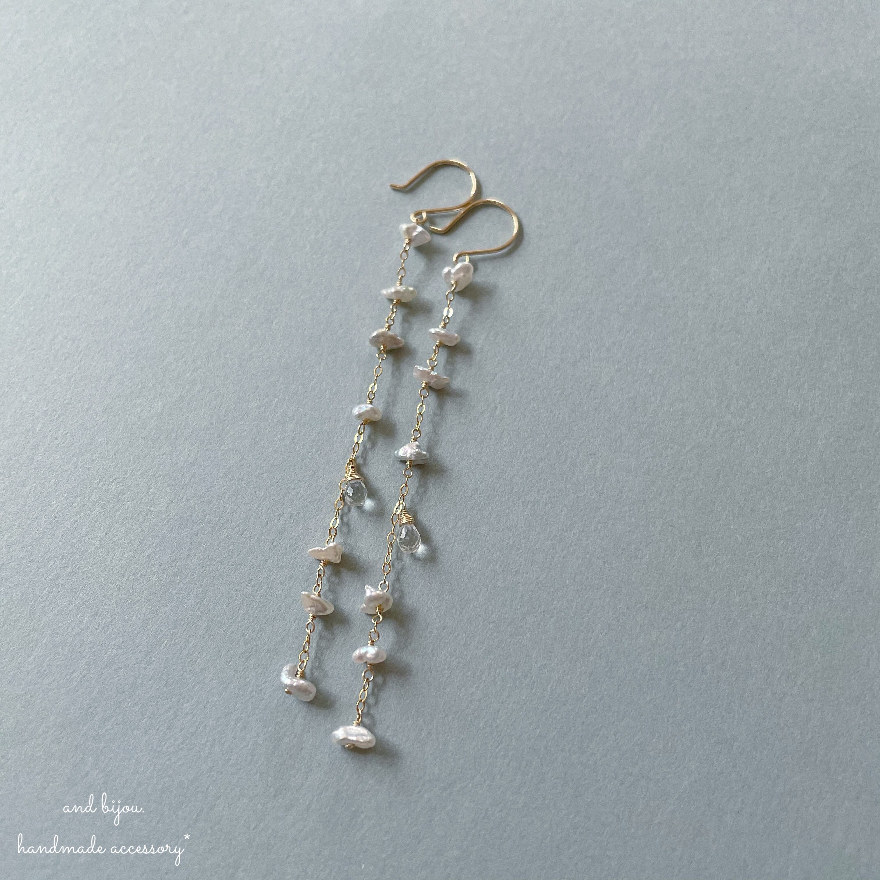 【再販】14kgf あこやパール × サファイア ピアス/イヤリング