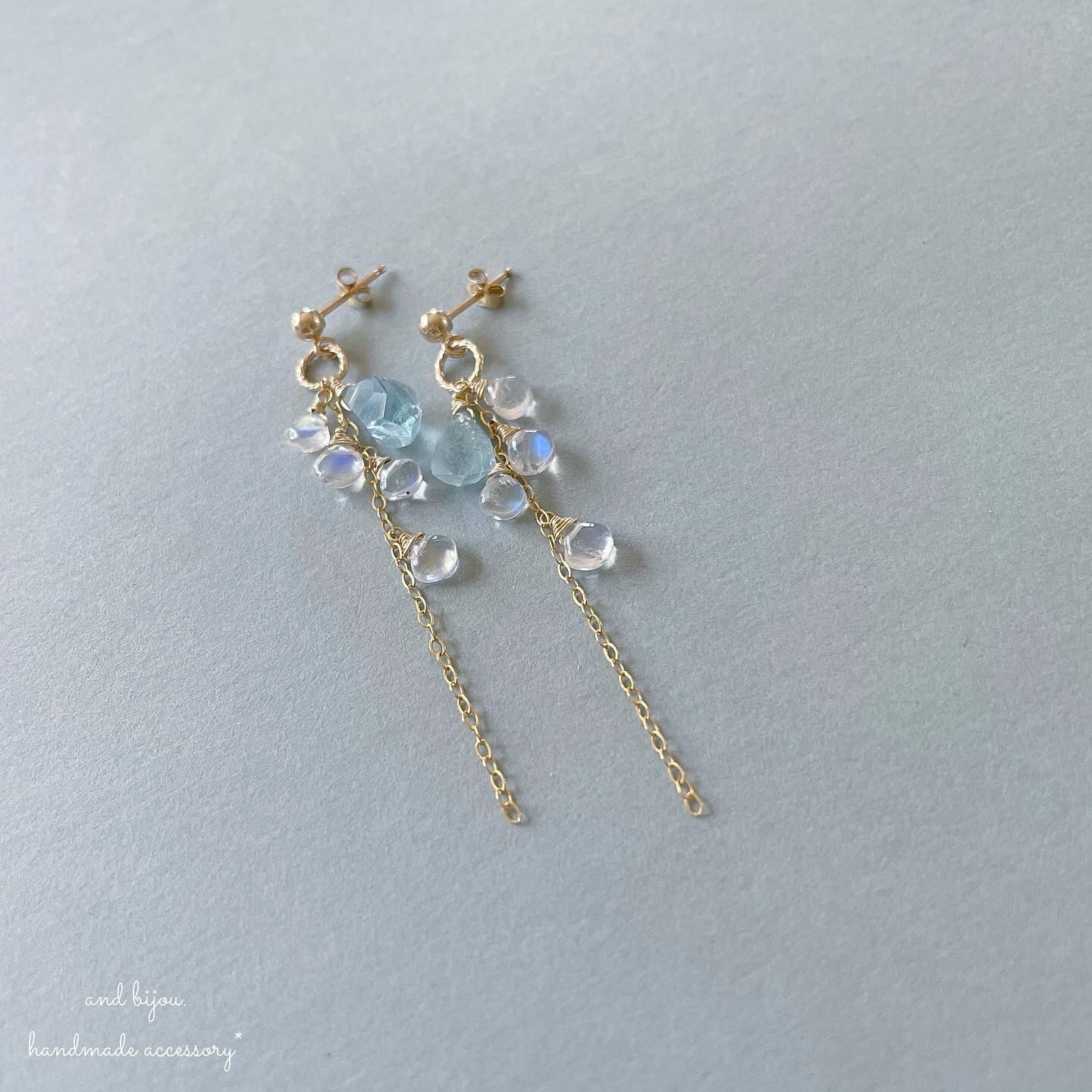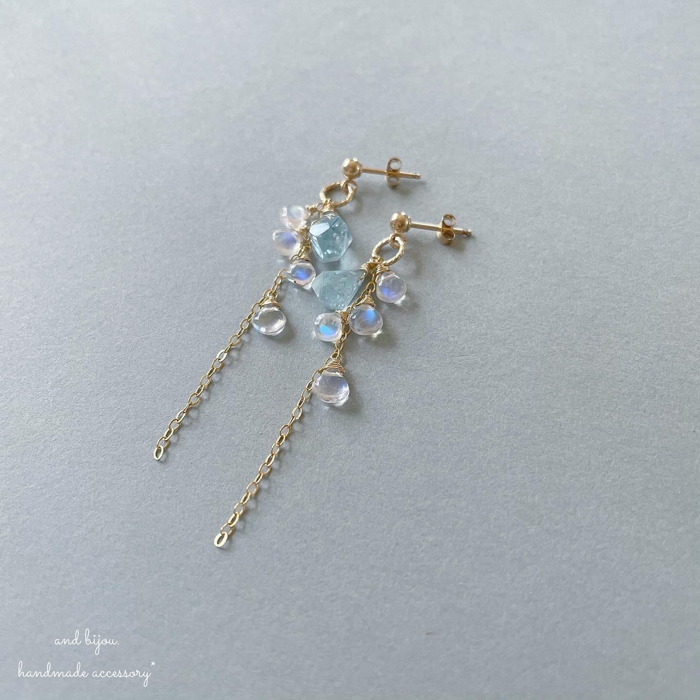 14kgf rainbow moon stone × milky aquamarine pierce*
