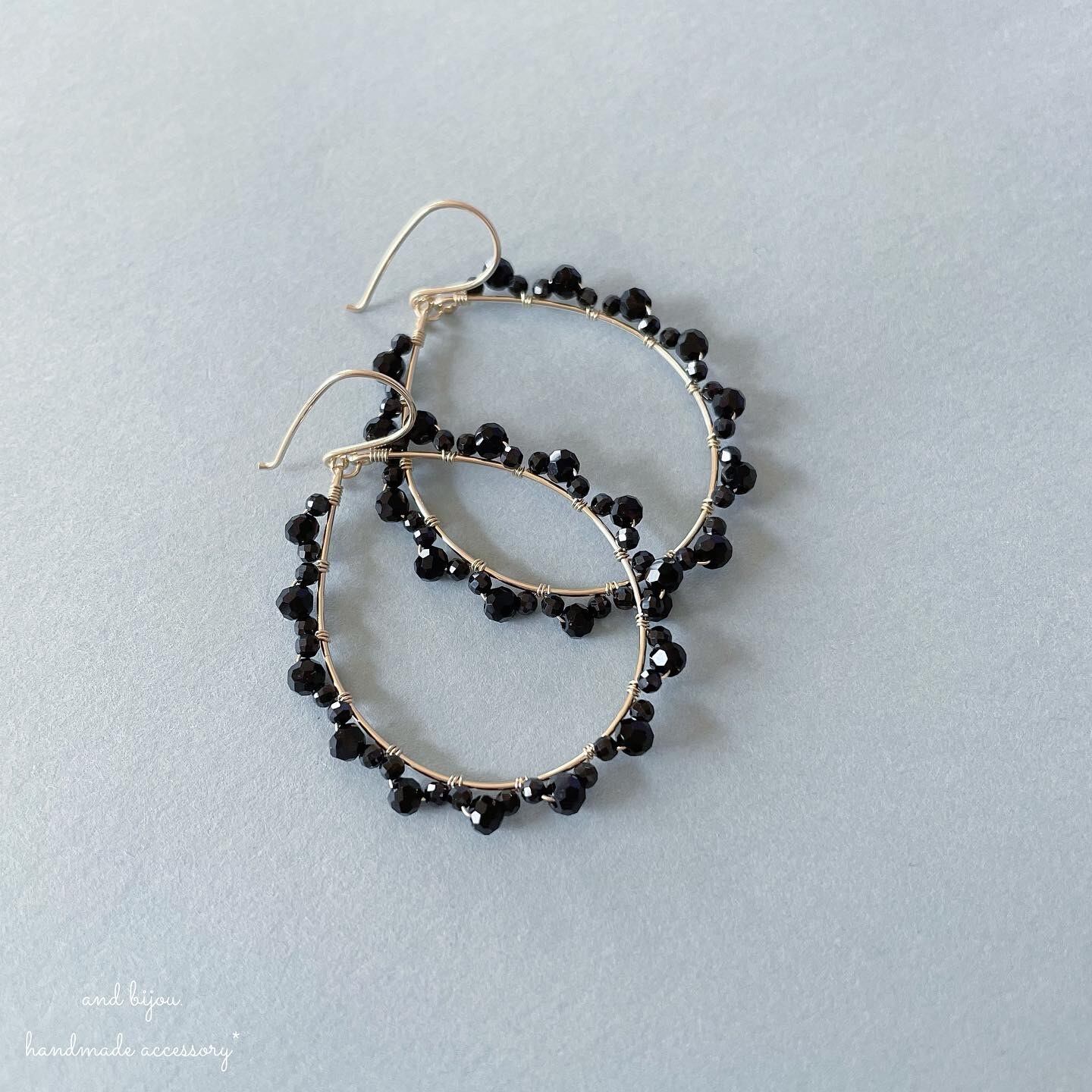 数年前作ったブラックスピネルのフープピアス、今回はフックタイプでお作りしました。