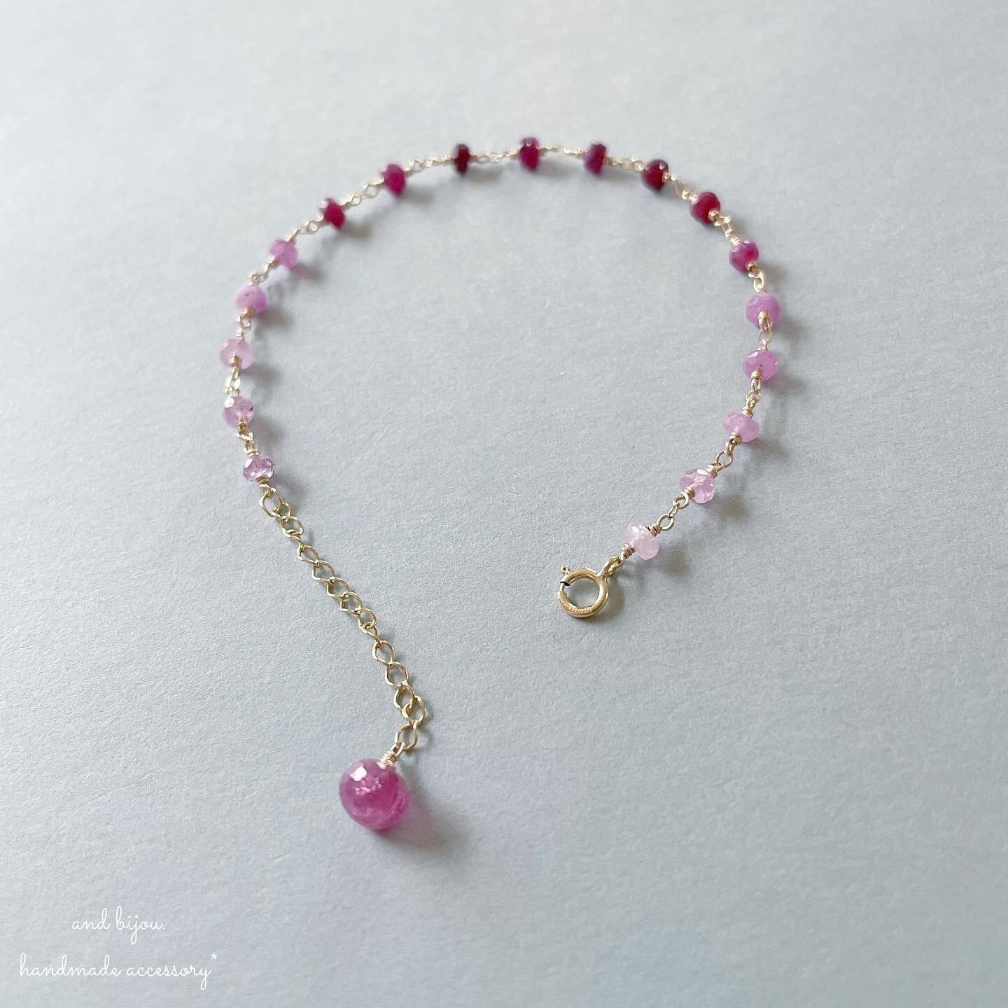 グラデーションカラーが可愛いルビーのブレスレットをお作りしました。