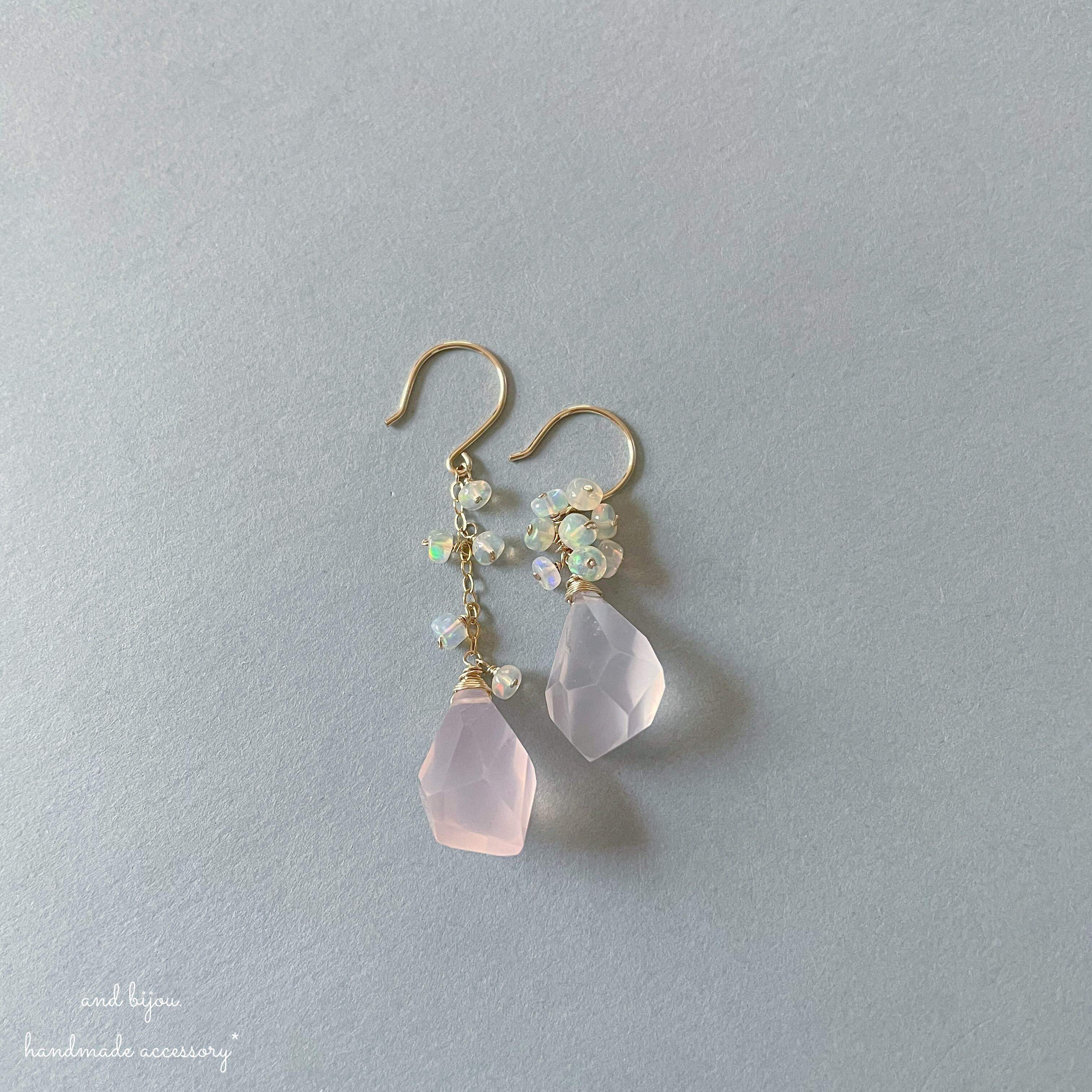 ◆ 14kgf rose quartz × ethiopia opal pierce* 3400円
