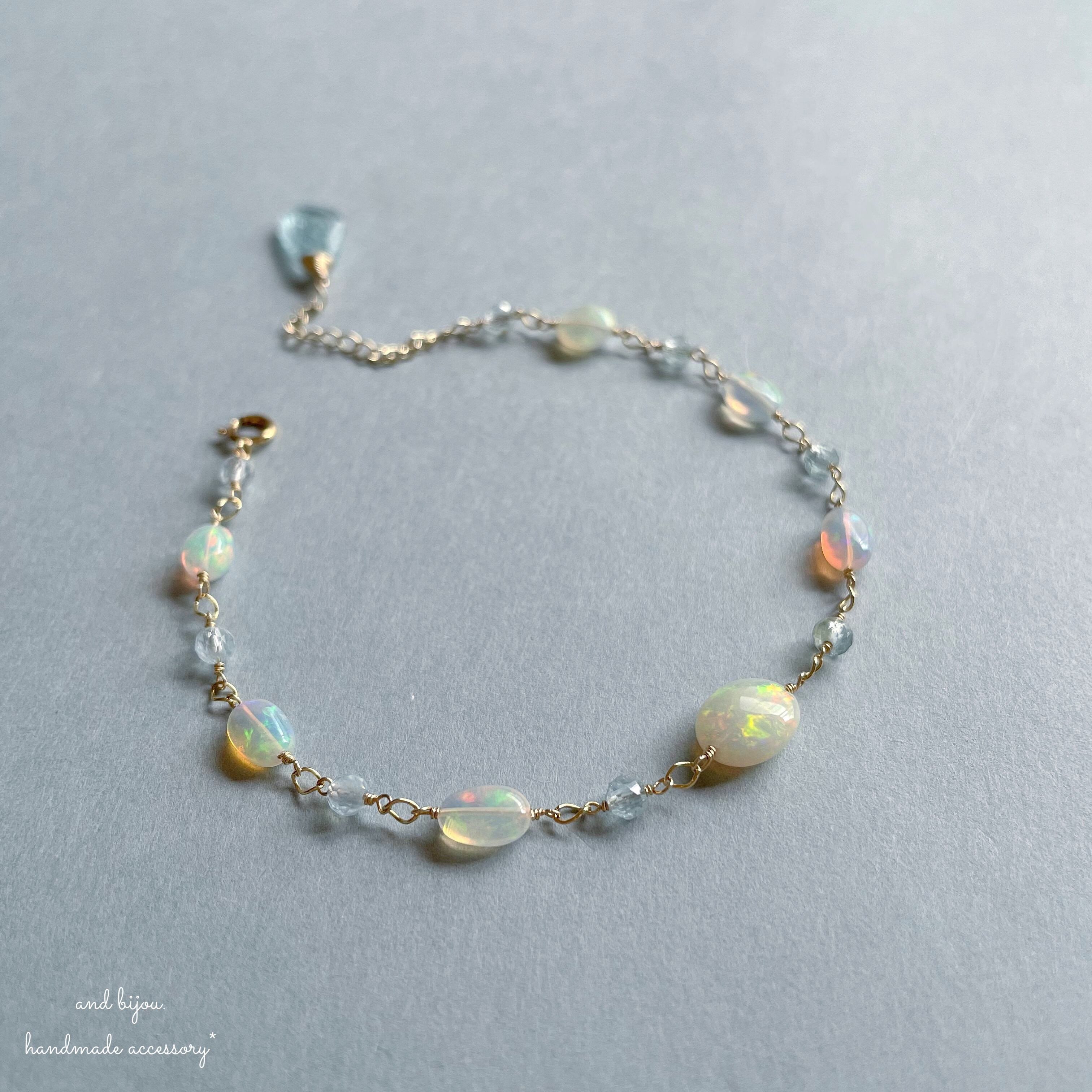 ◆ 14kgf ethiopia opal × aquamarine bracelet* 4300円