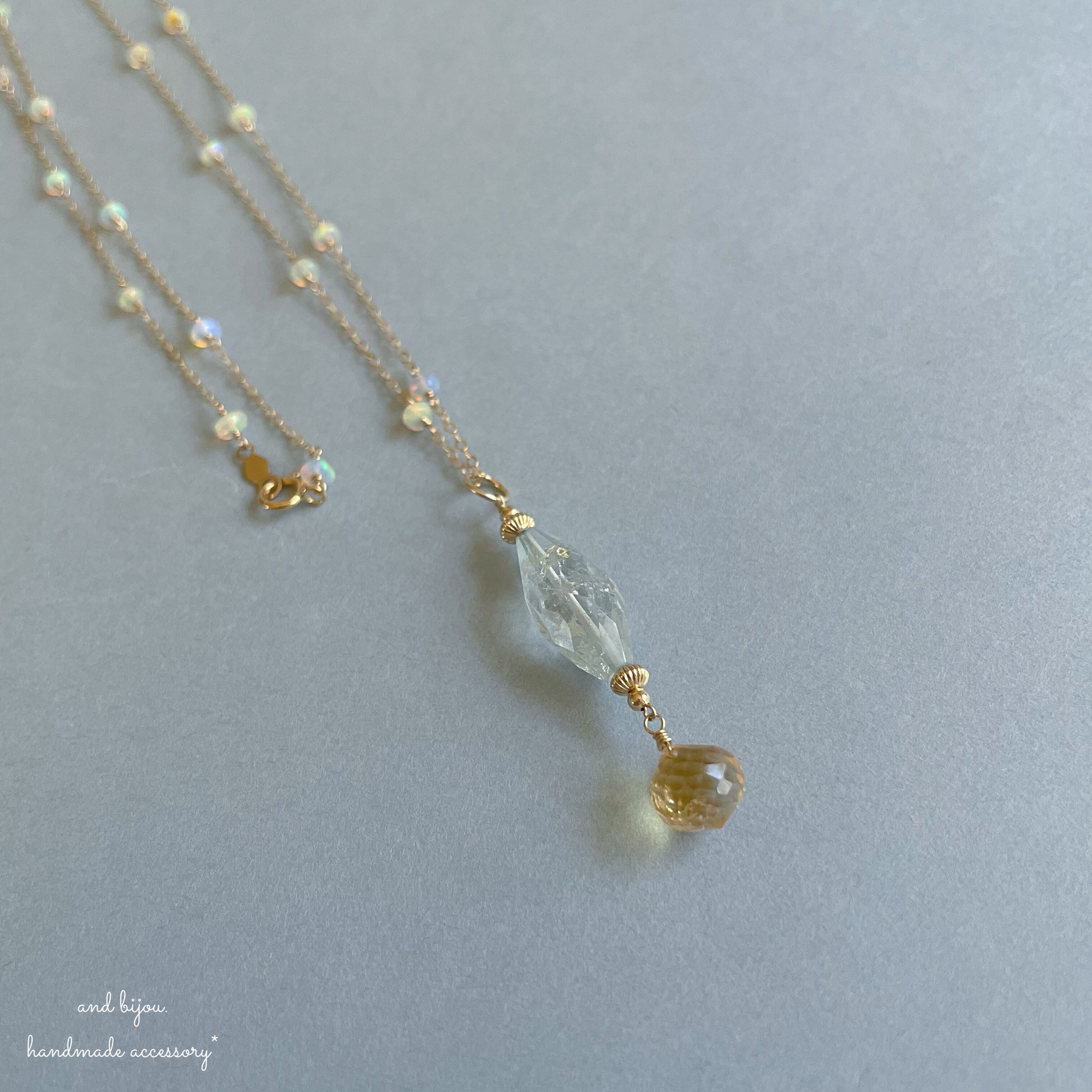 14kgf green amethyst × citrine/ethiopia opal necklace*