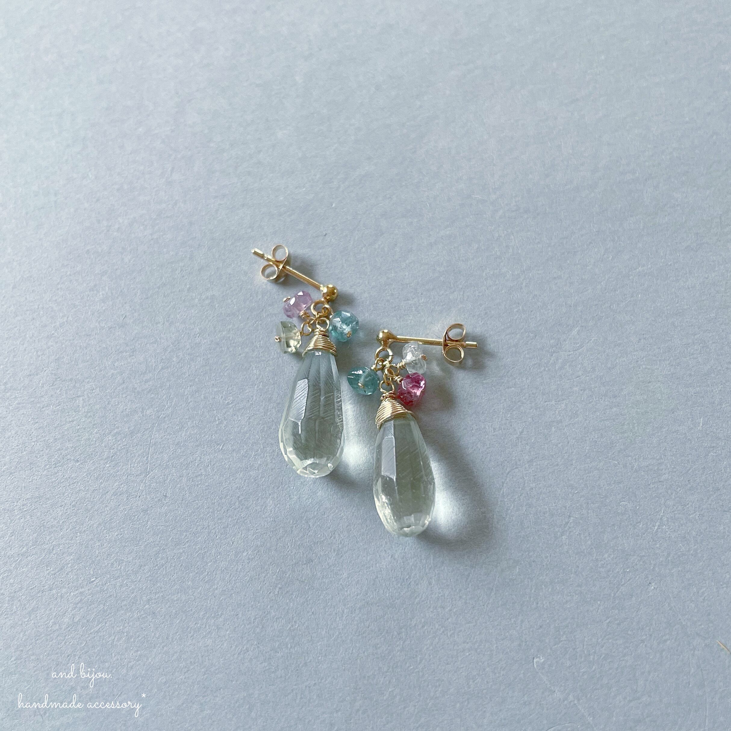 グリーンアメジストとトルマリンのピアス。