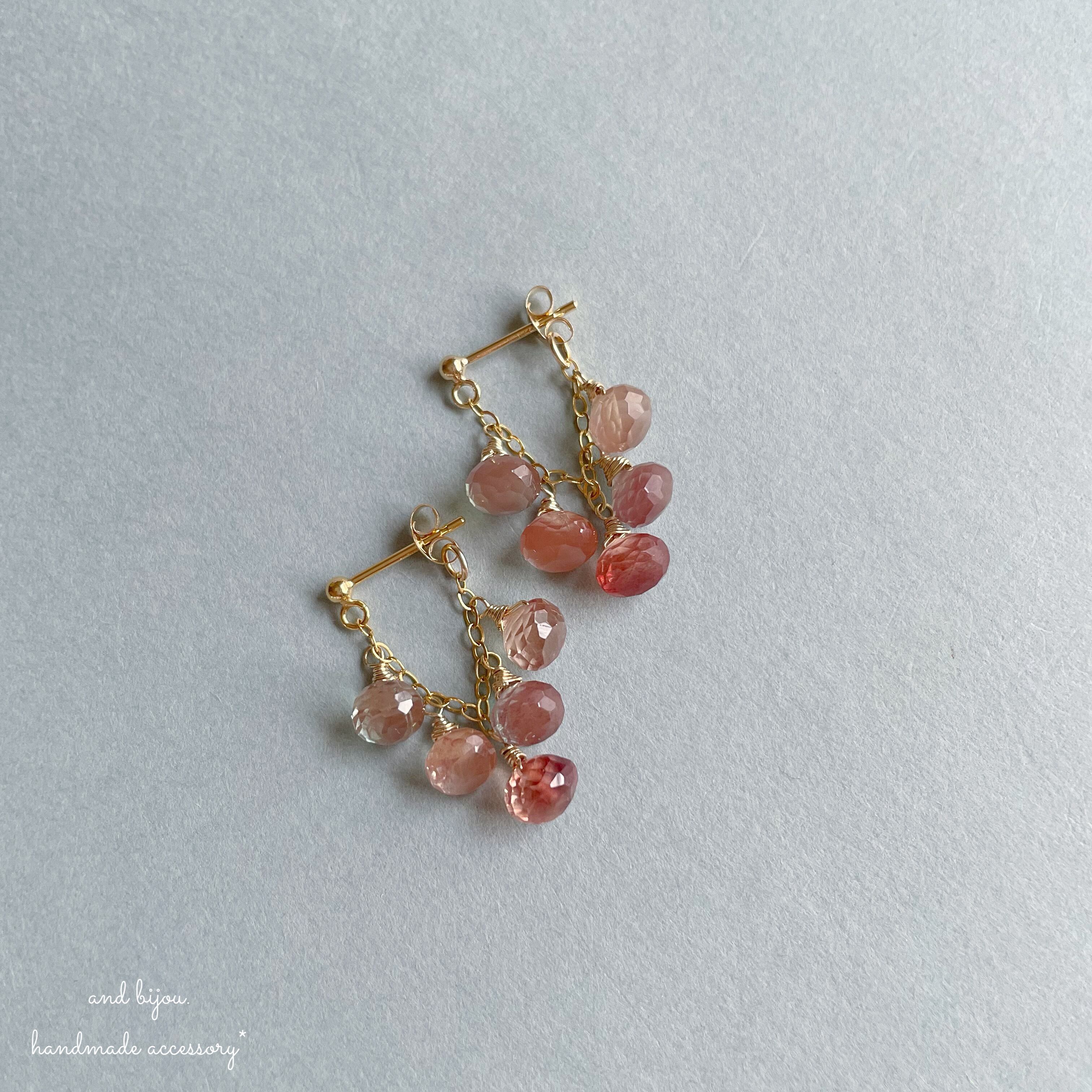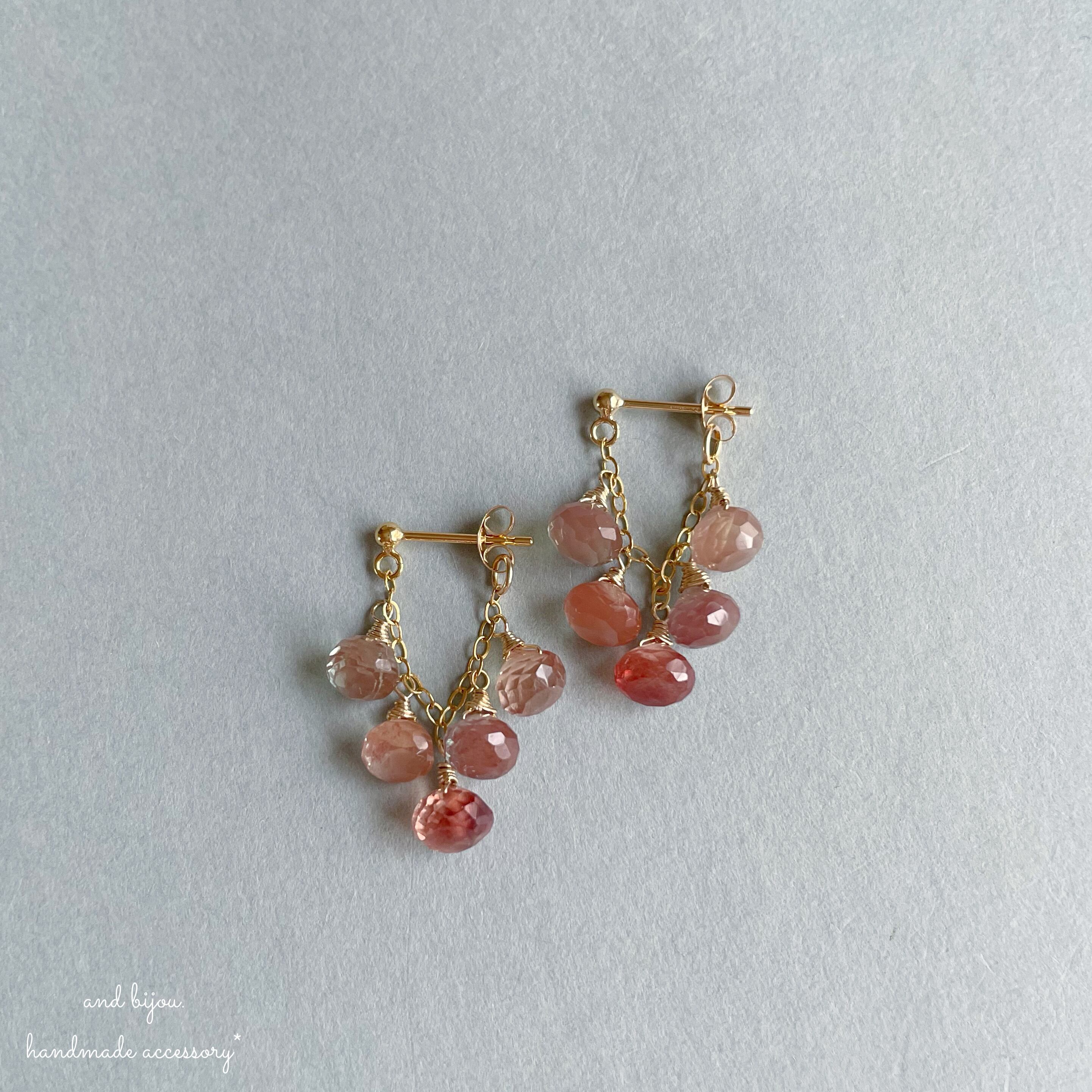 ころんとしたオニオンカットのアンデシンが耳に沿うように下がるデザインが可愛いシャンデリアピアスです。