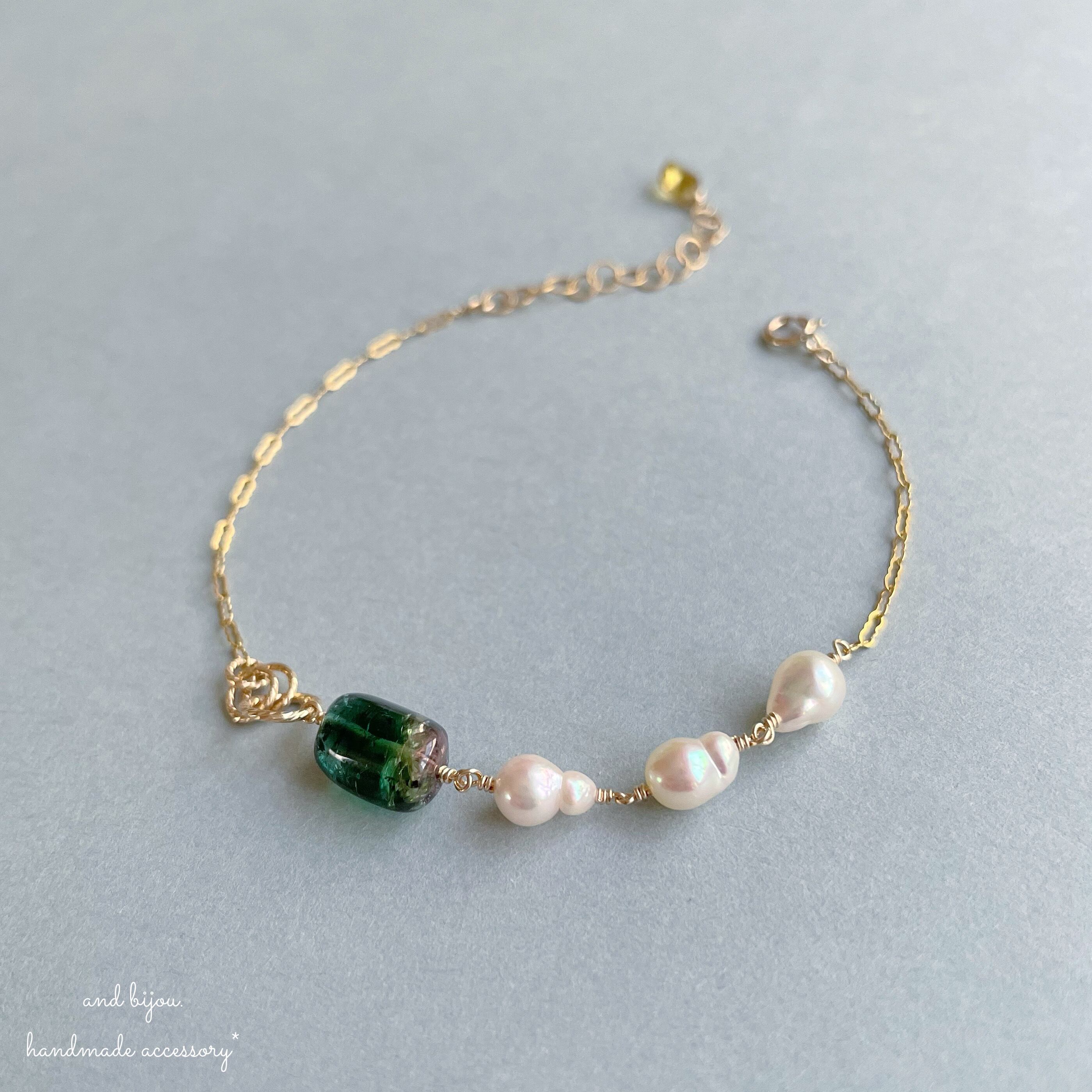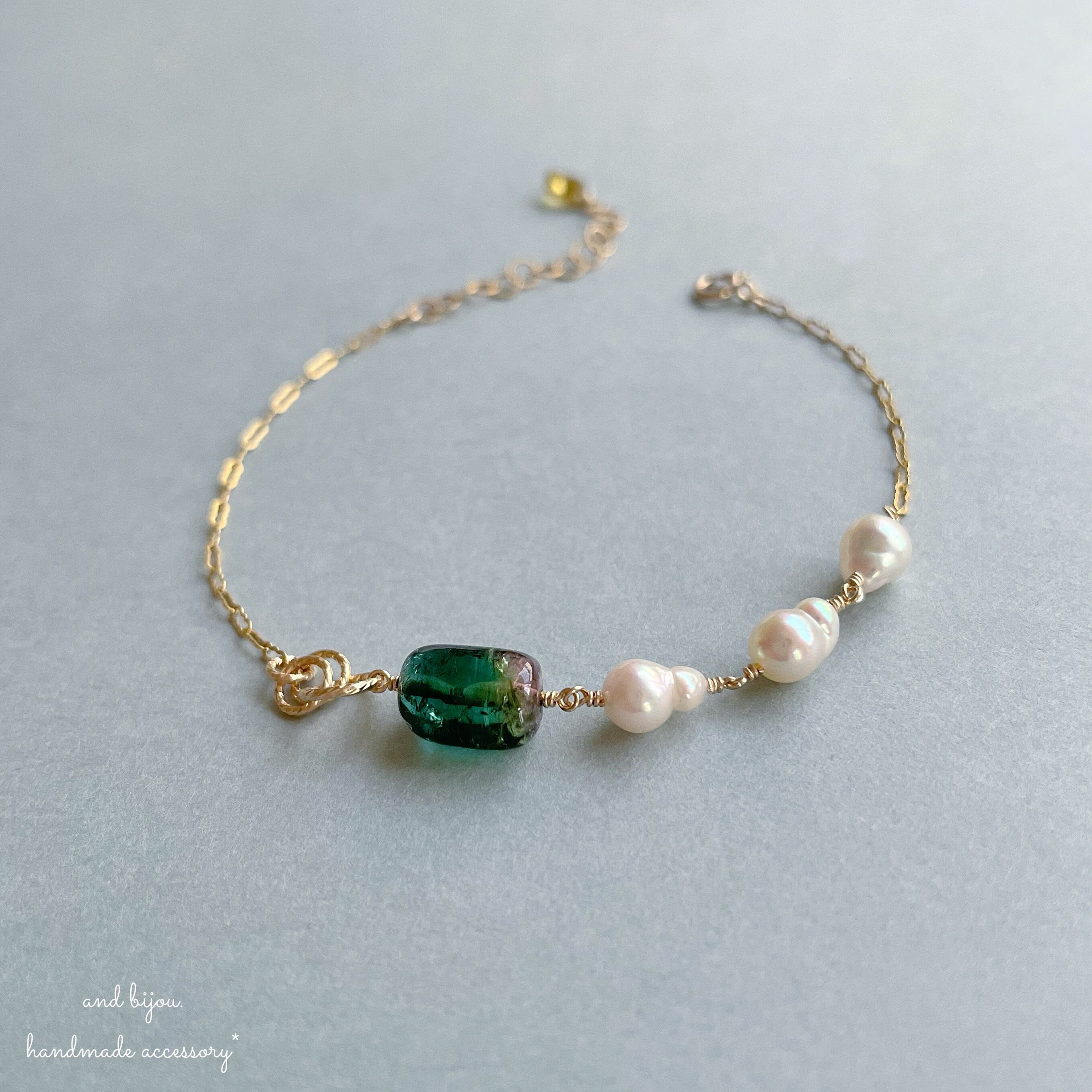 14kgf bi color tourmaline × akoya pearl bracelet*