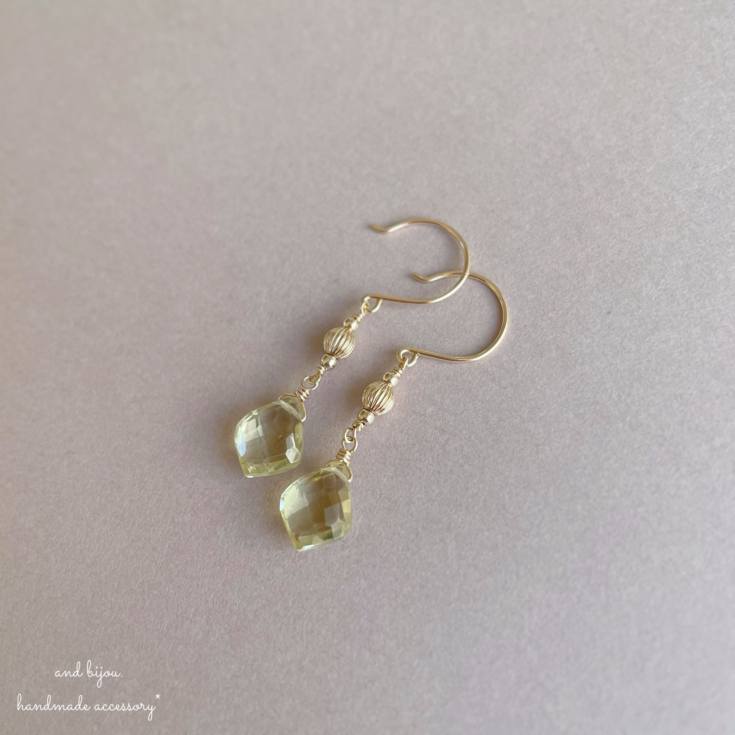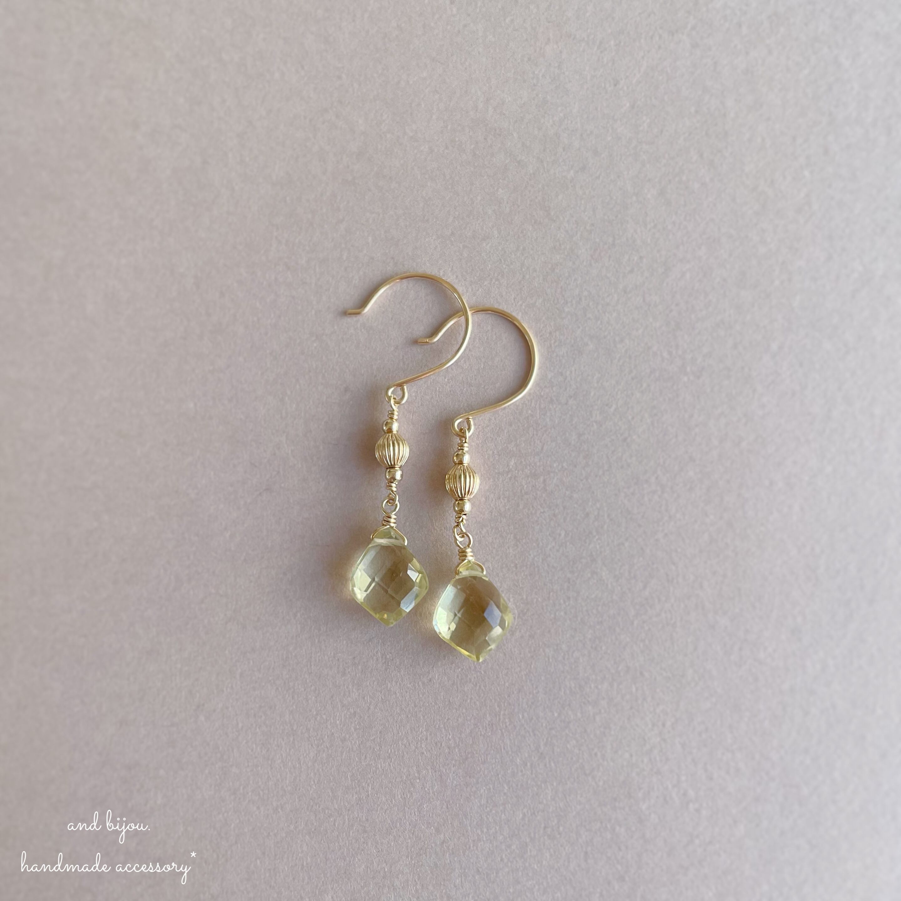 【再販】14kgf レモンクォーツ 一粒ピアス