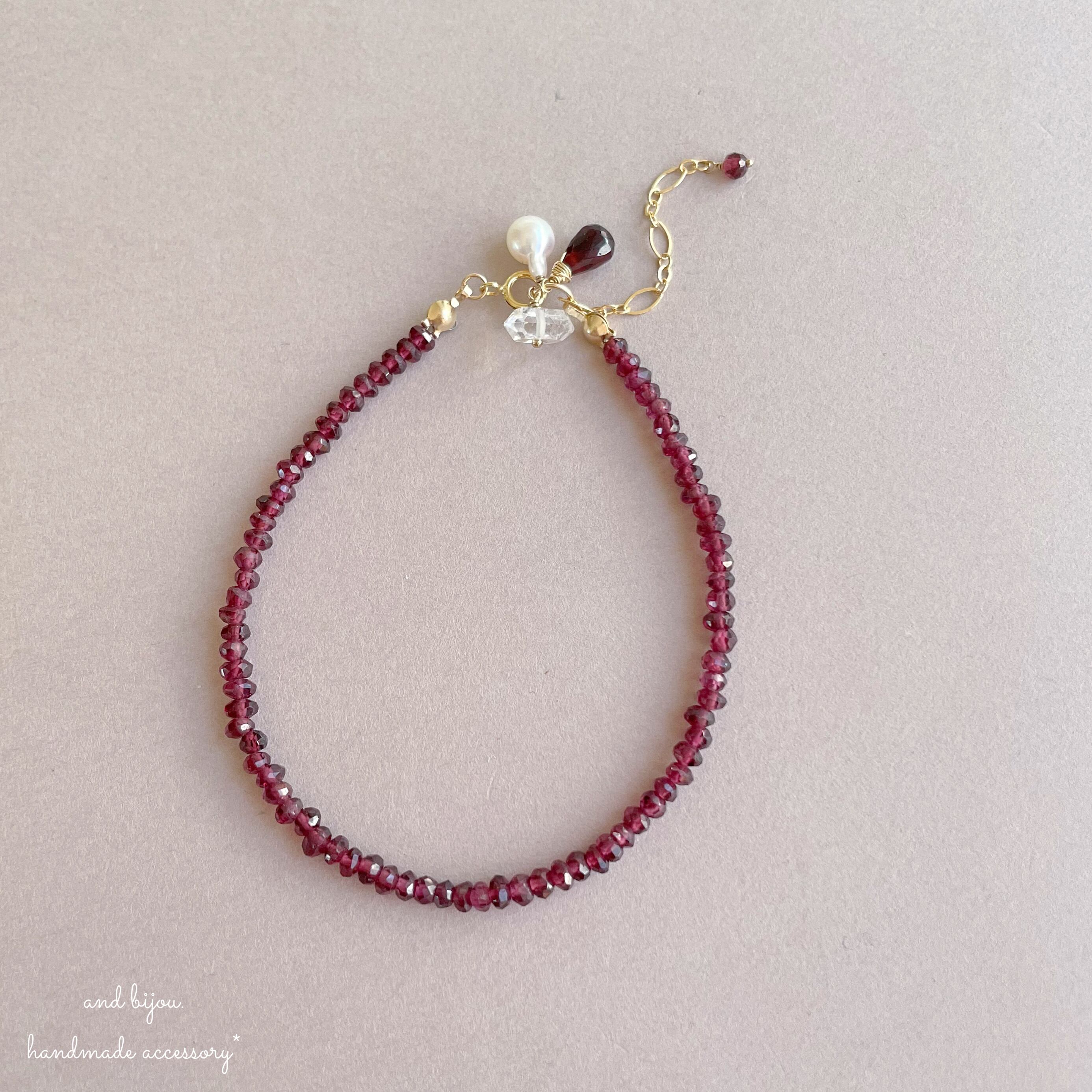 ◆ 素材:14kgf/・ガーネット・ハーキマーダイアモンド・あこや真珠 (伊勢志摩産)