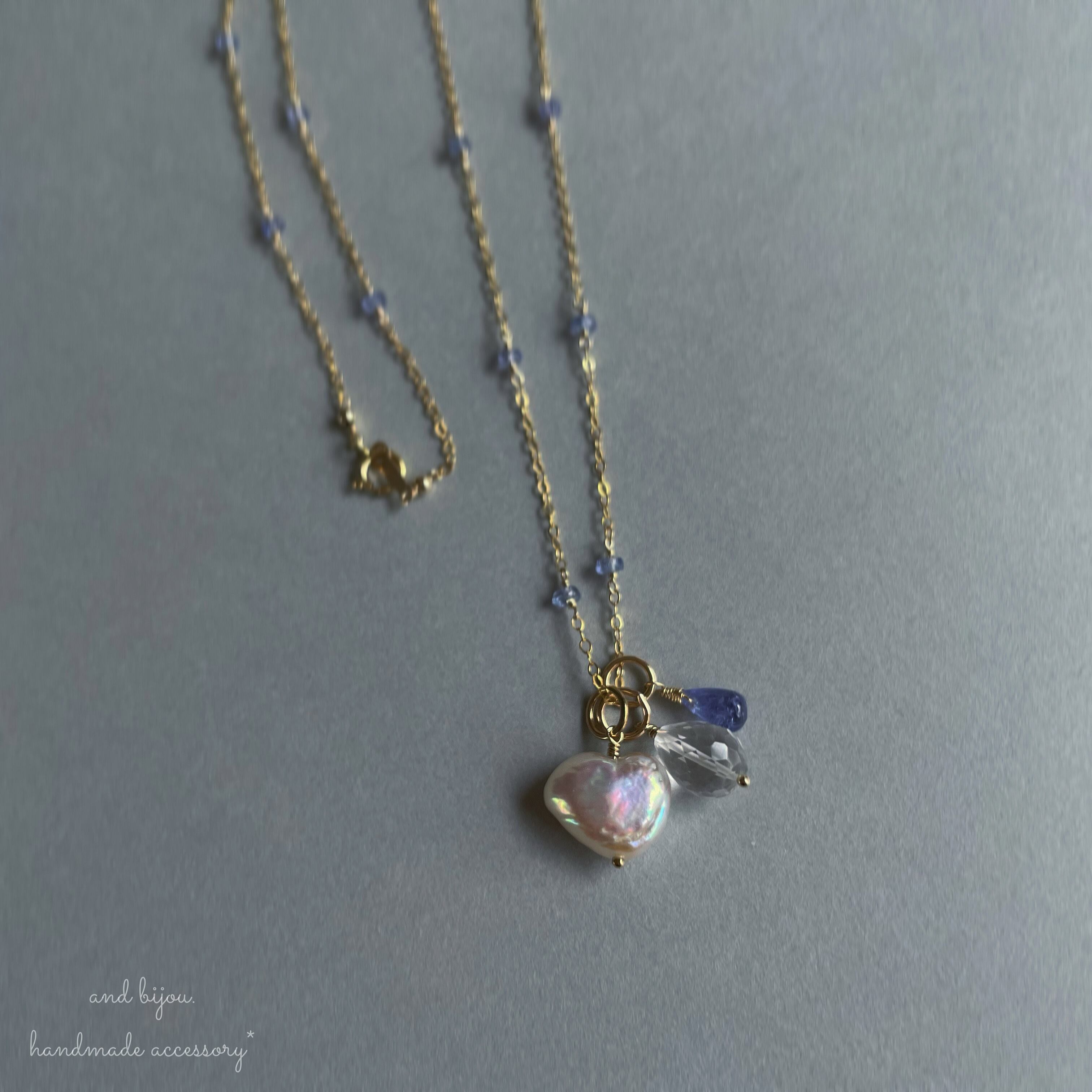 ◆ 素材:14kgf/タンザナイト・淡水パール・水晶