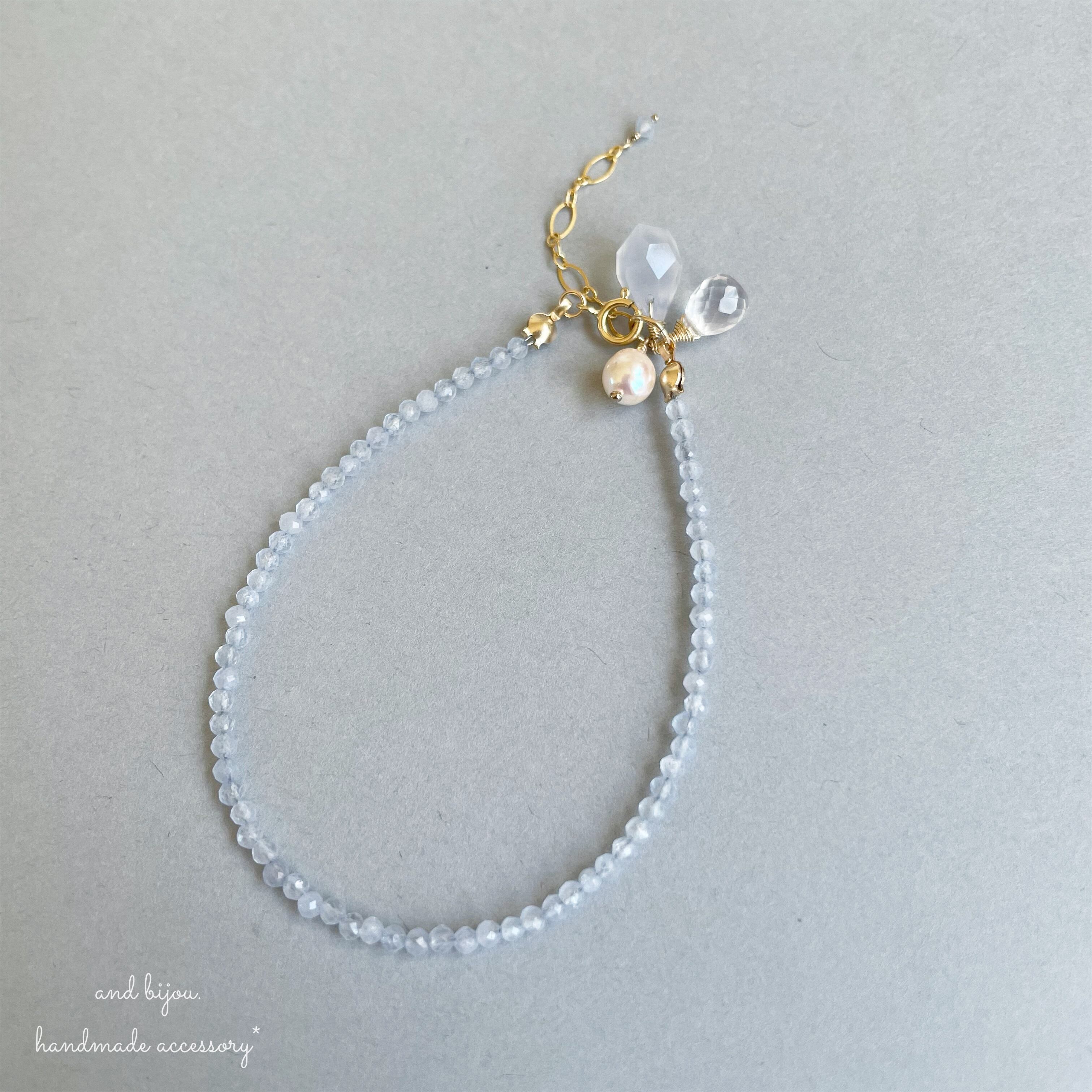 ◆ 素材:14kgf/カルセドニー・あこや真珠・アイスクォーツ