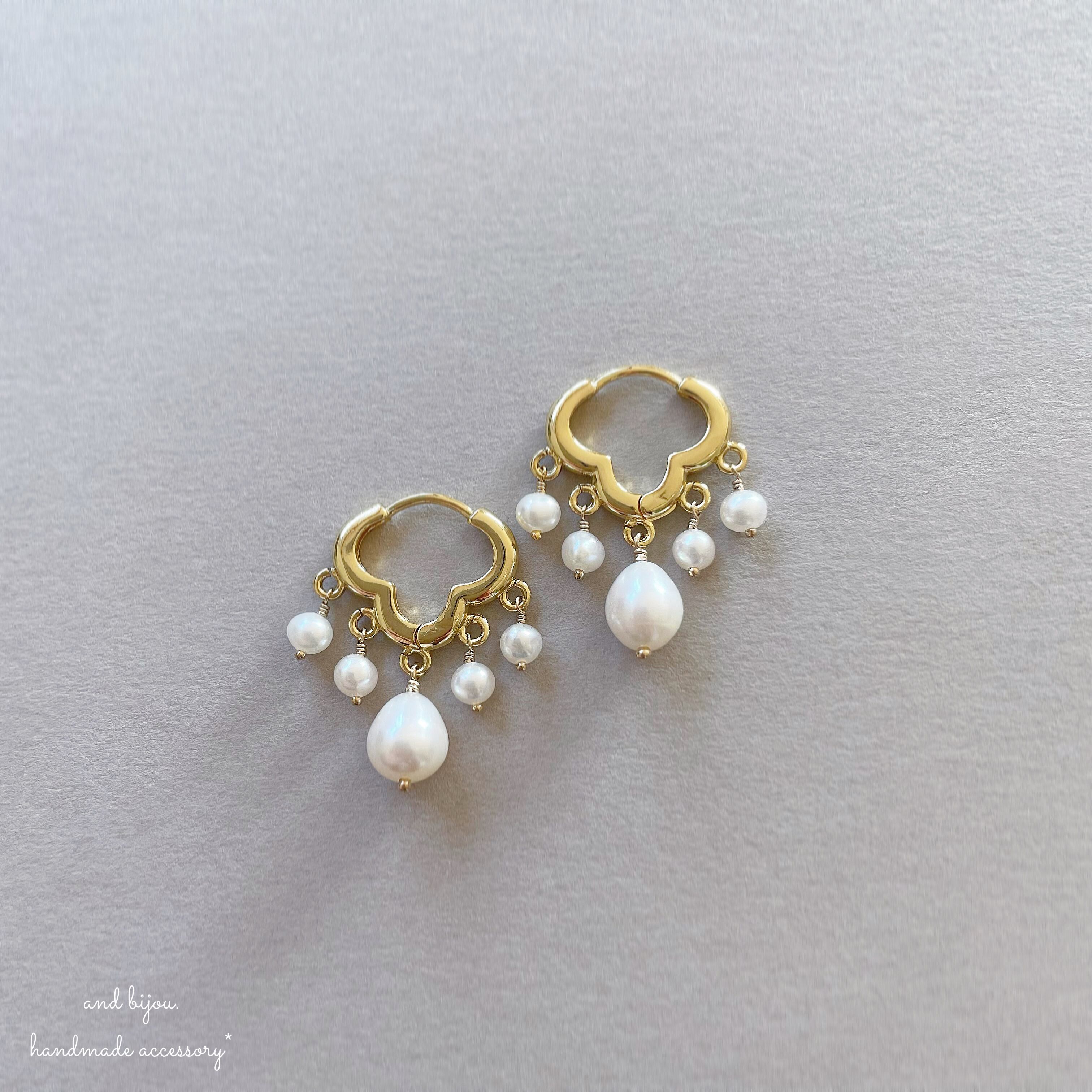 【受注制作】14kgf freshwater pearl/moroccan pierce*