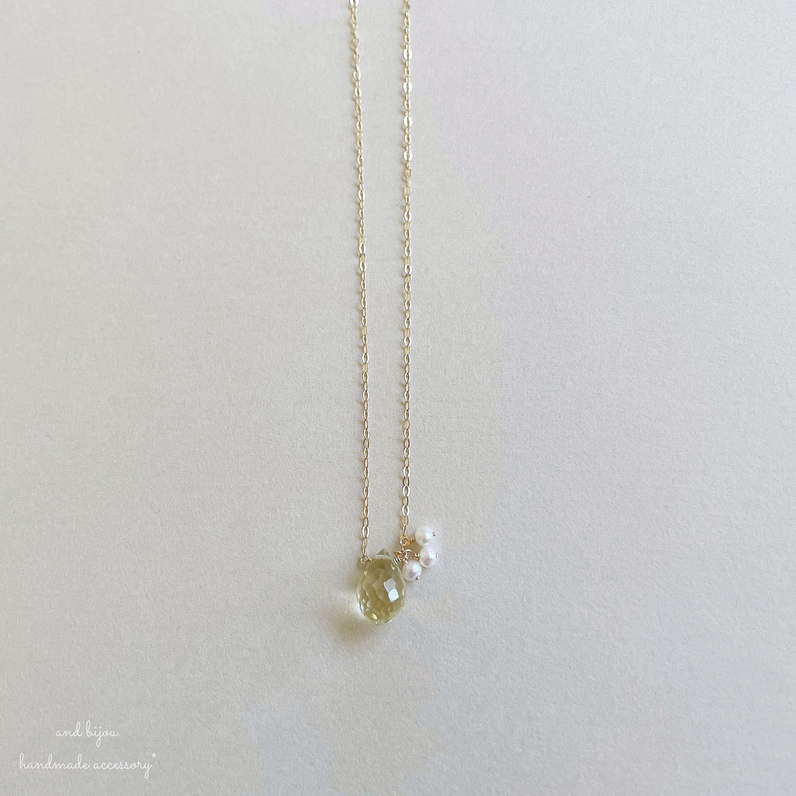 【outlet】14kgf lemon quartz × fresh water pearl necklace*