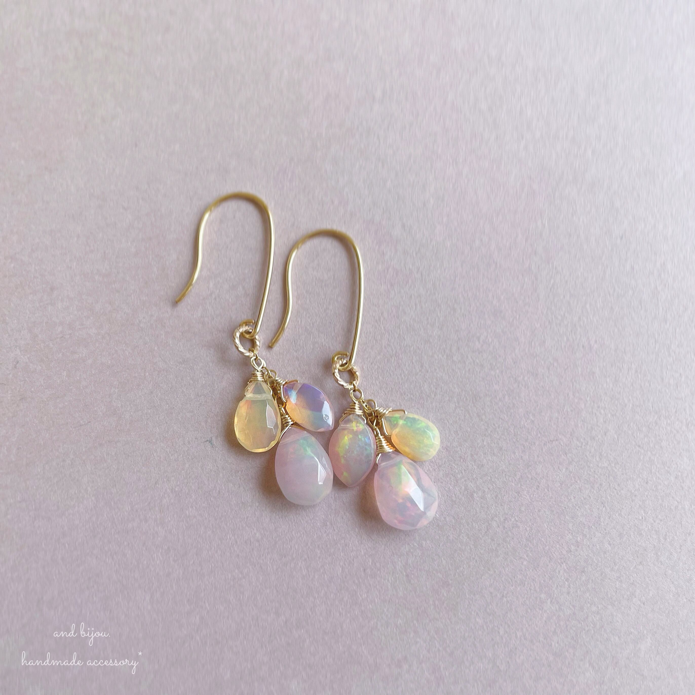and bijou.では、宝石質やAAA~AA として販売されている石を使用しておりますが、天然が故に欠けやヒビ、内包物が見受けられるものもございます。だからこそ輝き、また 虹が覗く天然石もございます。大きさ、形や色にも1つ1つにございます。天然石の魅力としてご理解お願いいたします。