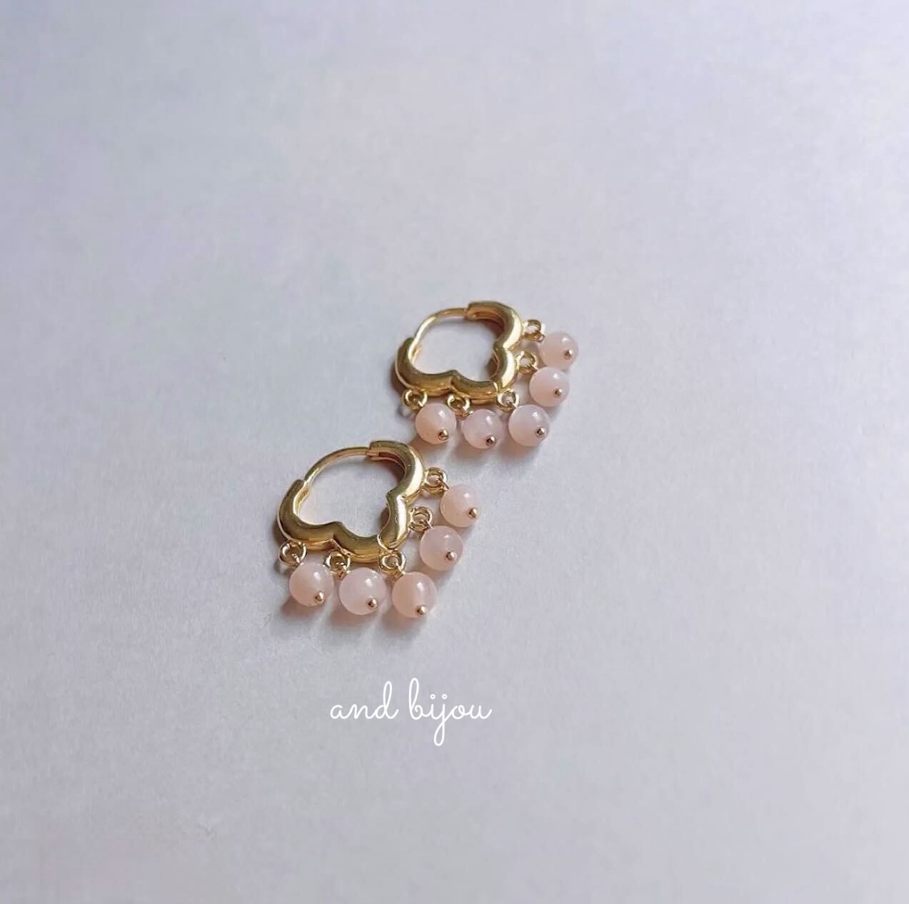 ◆ 素材:ピアス金具18kgp、他14kgf/ピーチムーンストーン