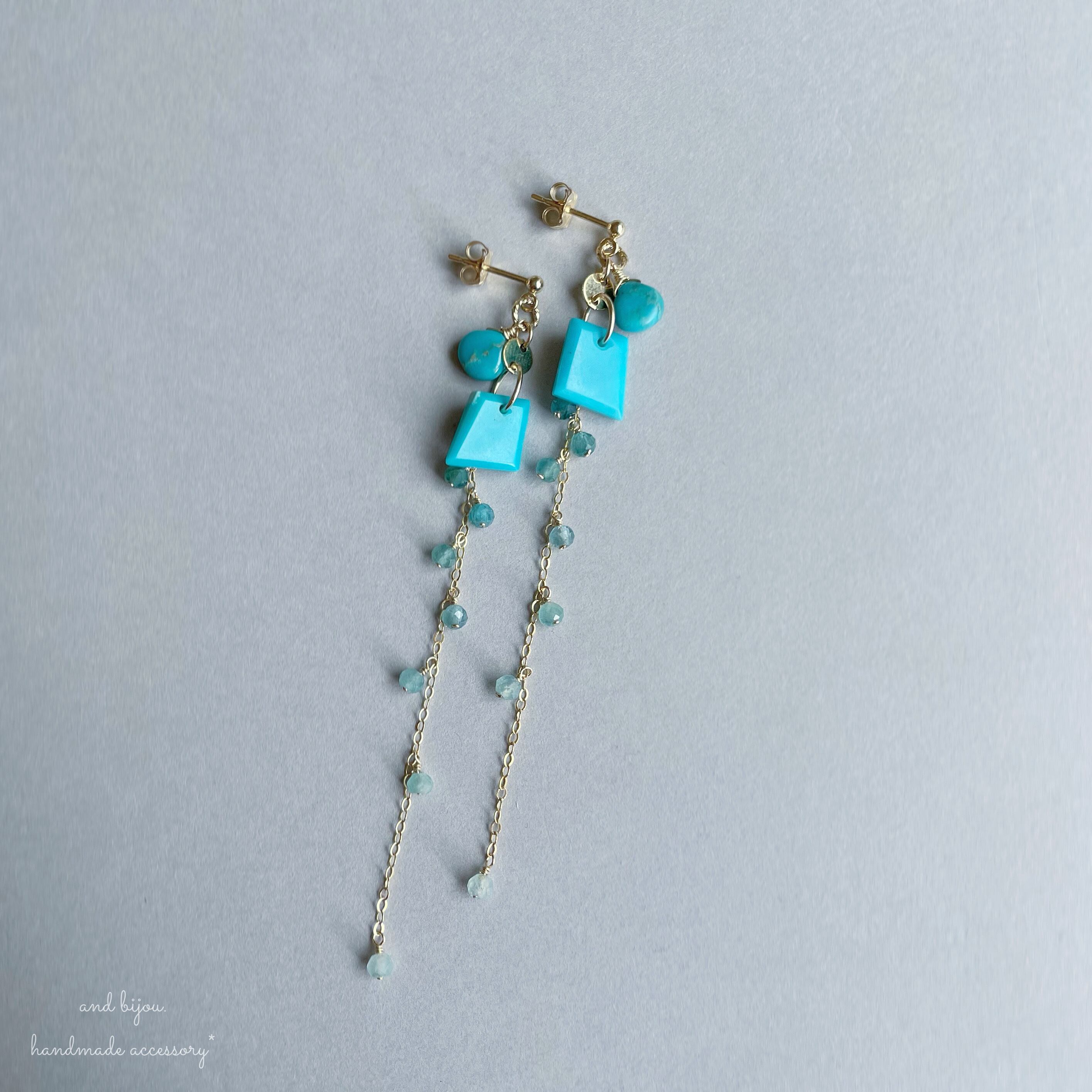 14kgf ターコイズ × グランディディエライト ロングピアス/イヤリング