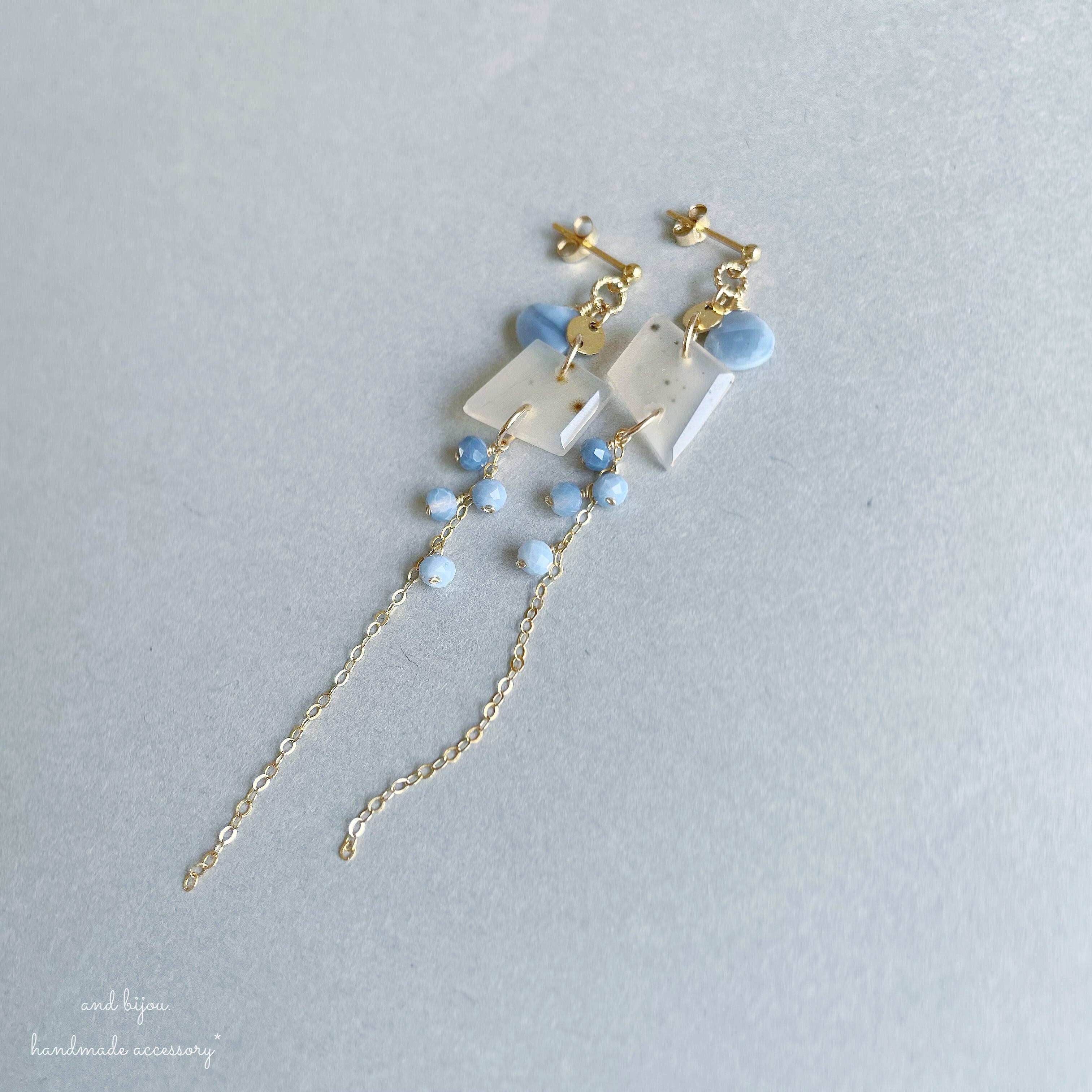 14kgf デンドリックアゲート × ブルーオパール ピアス/イヤリング