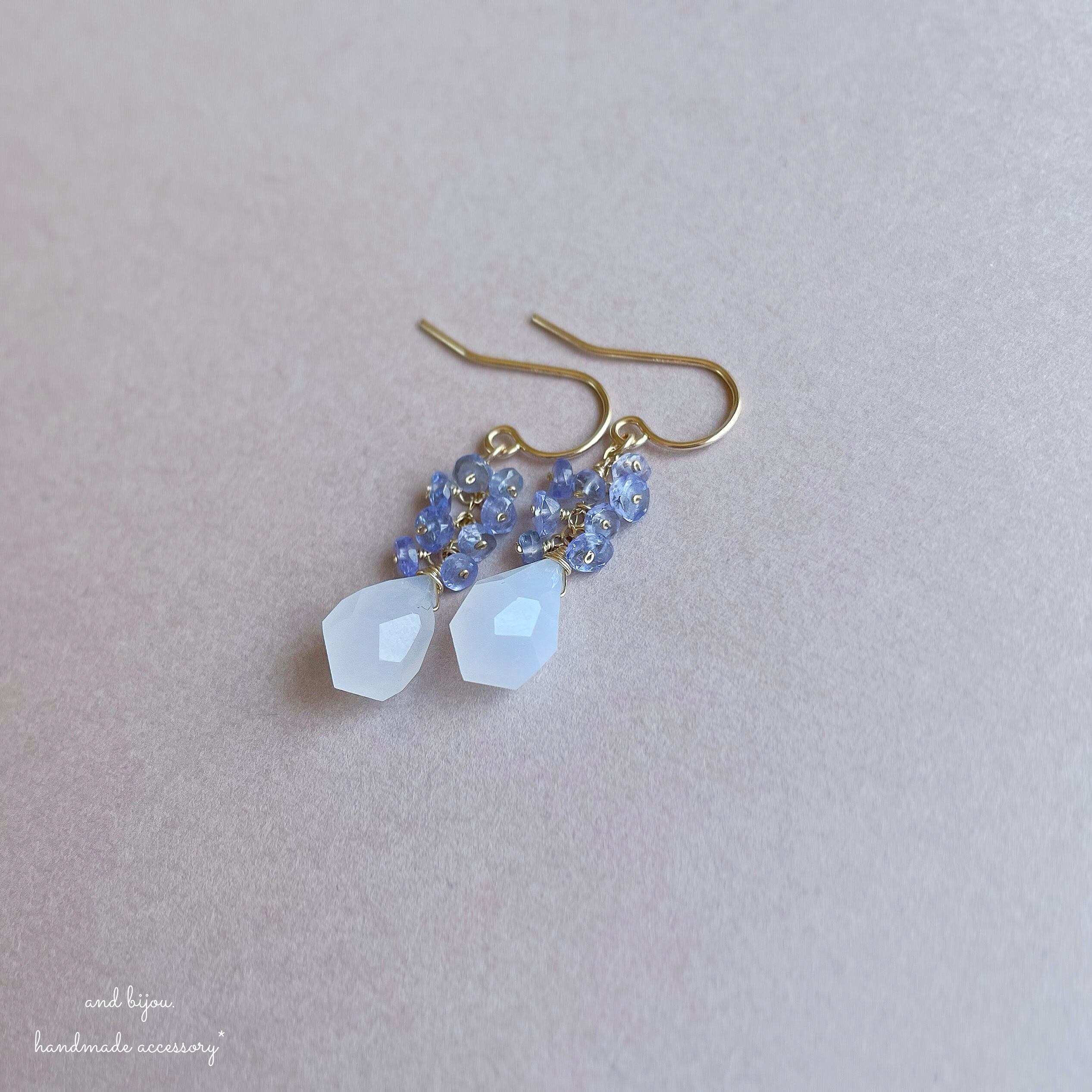 14kgf タンザナイト × カルセドニー ピアス/イヤリング