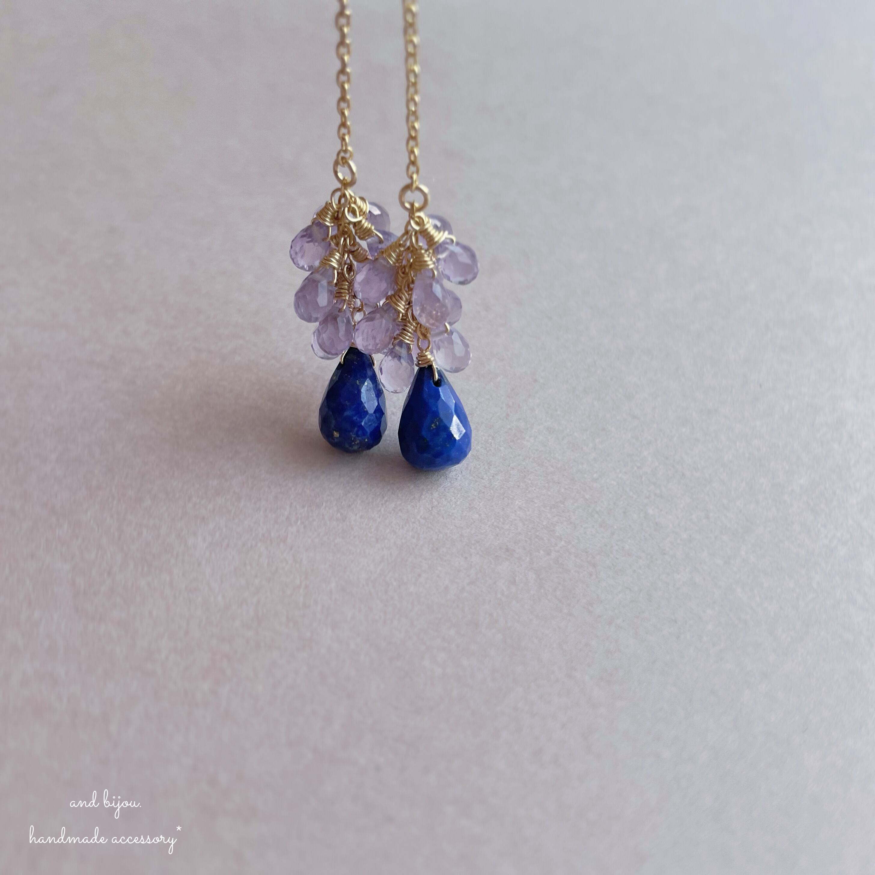 ◆ 素材:ピアス金具18kgp、他14kgf/ラベンダーアメジスト・ラピスラズリ