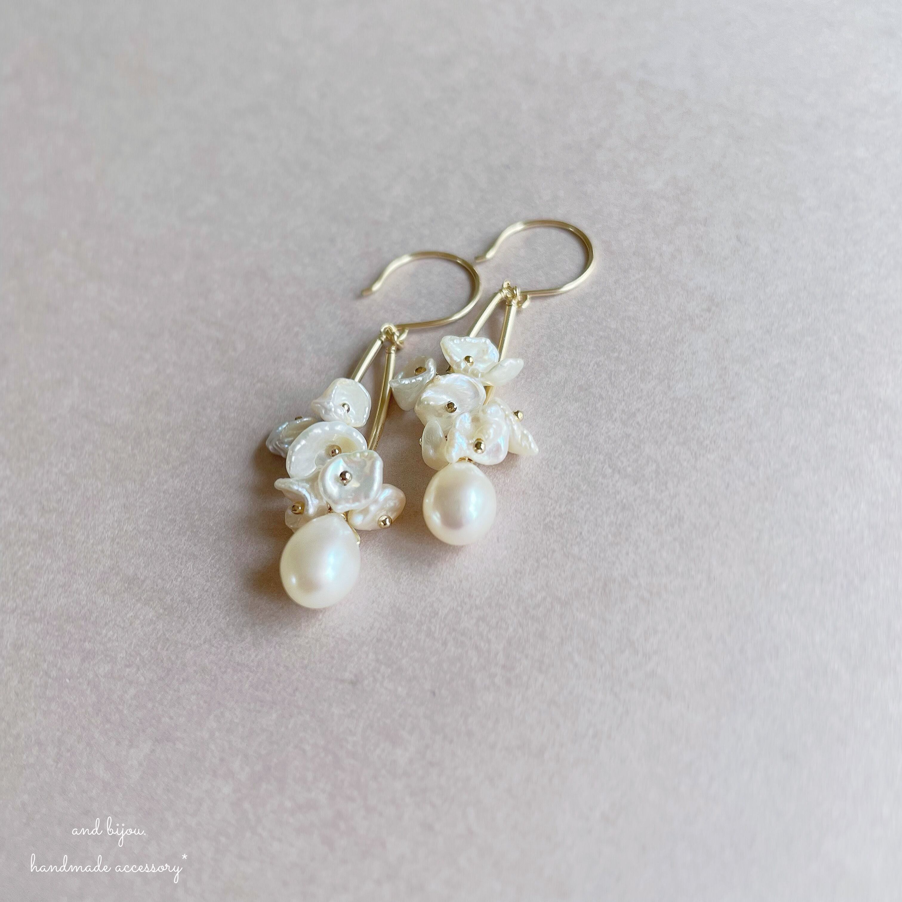 【6月誕生石】14kgf 花びらパール ブーケピアス/イヤリング