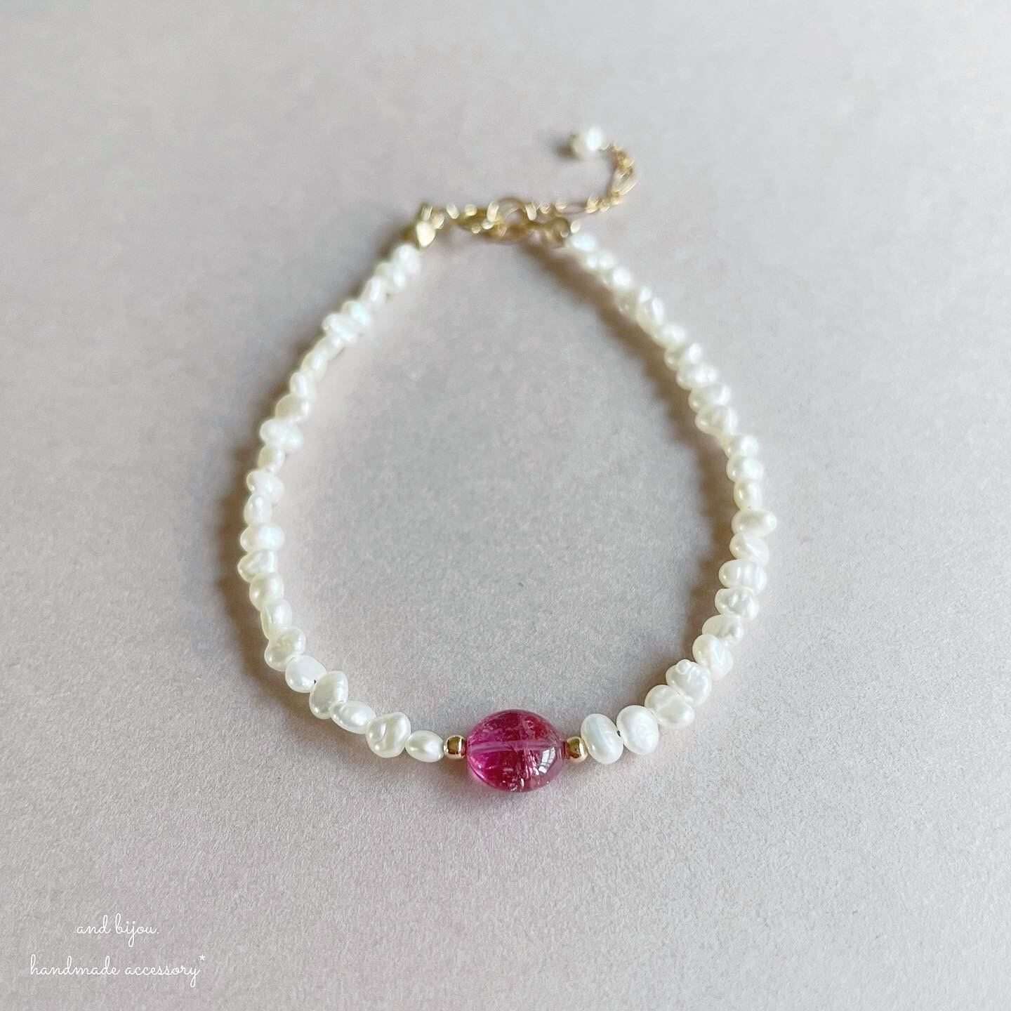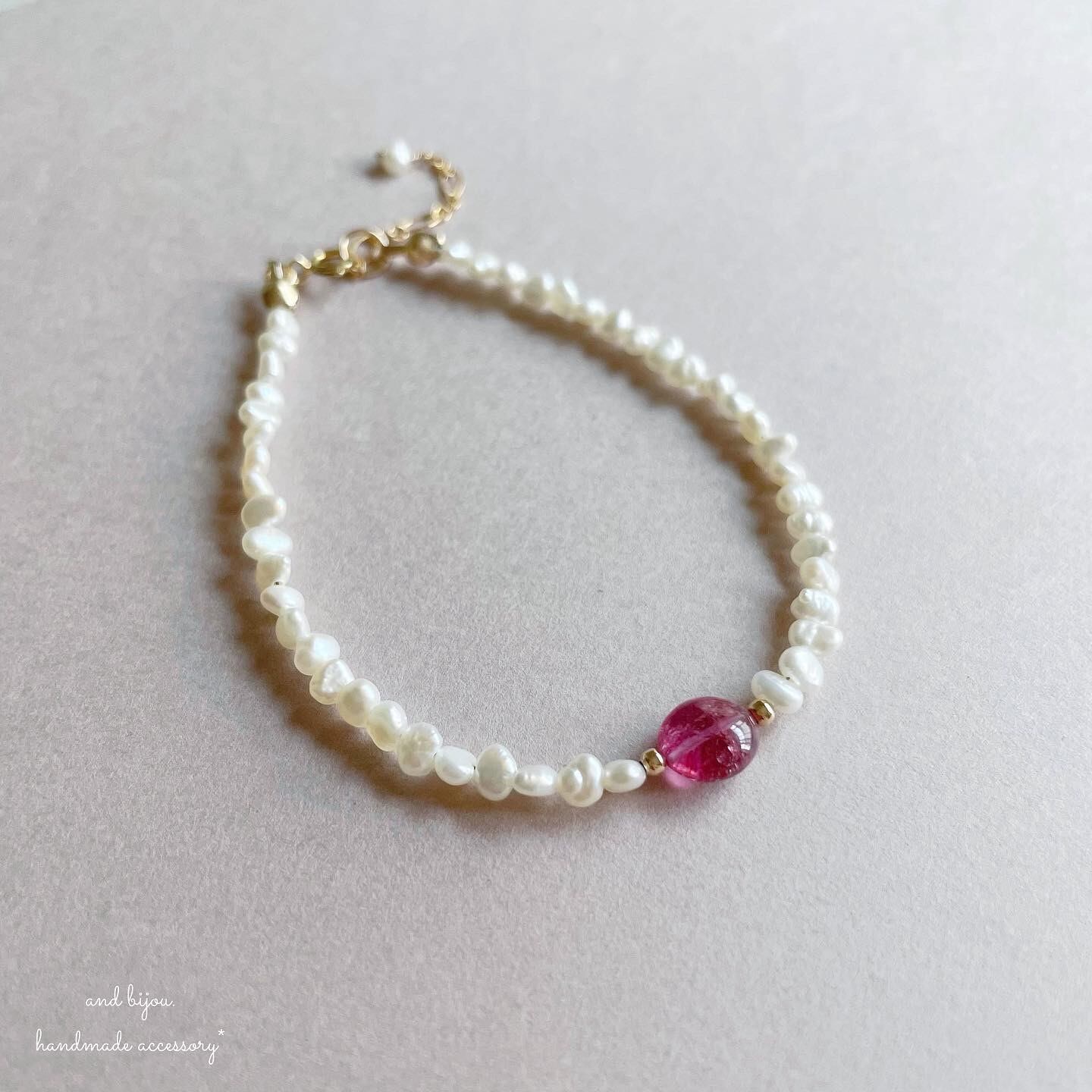 【6月誕生石】14kgf 淡水パール × ピンクトルマリン フルブレスレット