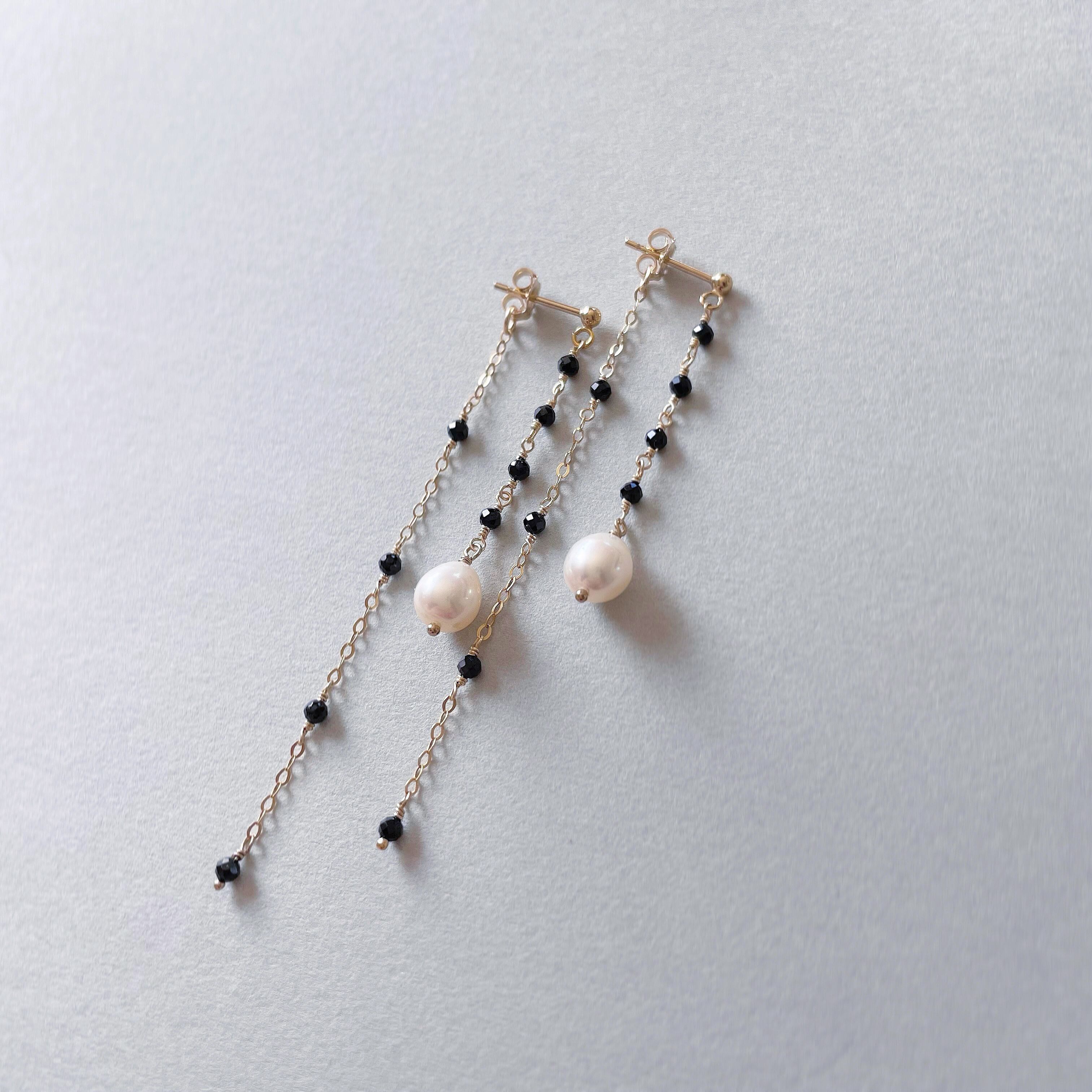 14kgf ブラックスピネル × 淡水パール ピアス