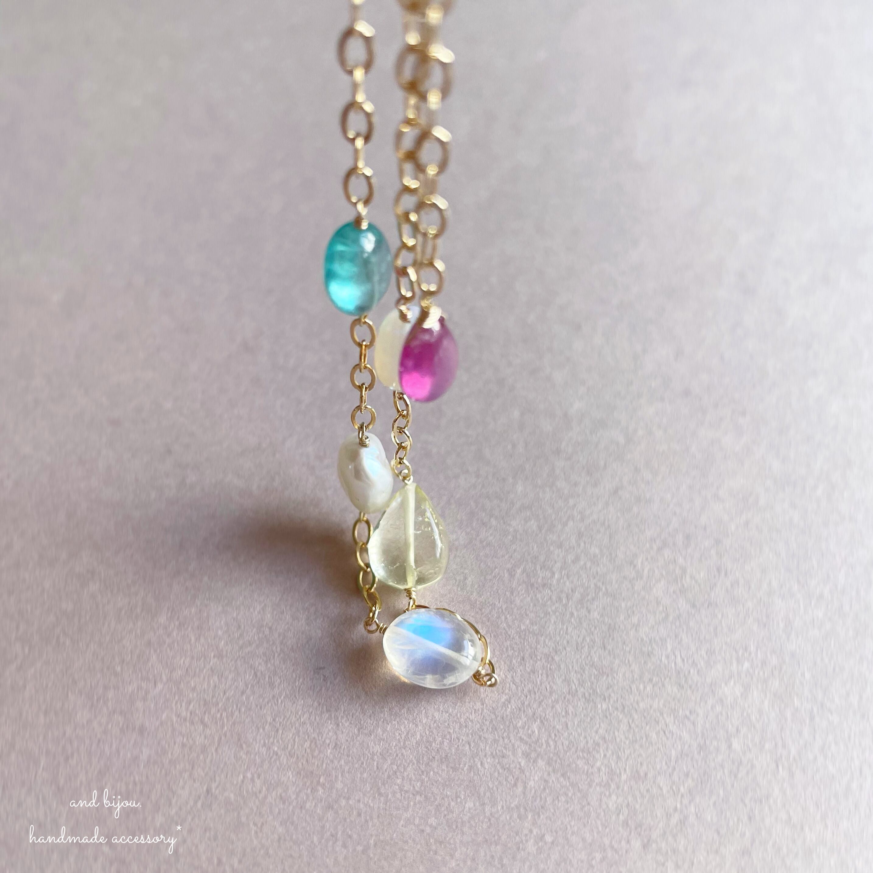 ◆ 素材:14kgf/アパタイト・淡水パール・レインボームーンストーン・レモンクォーツ・オパール・ルビー