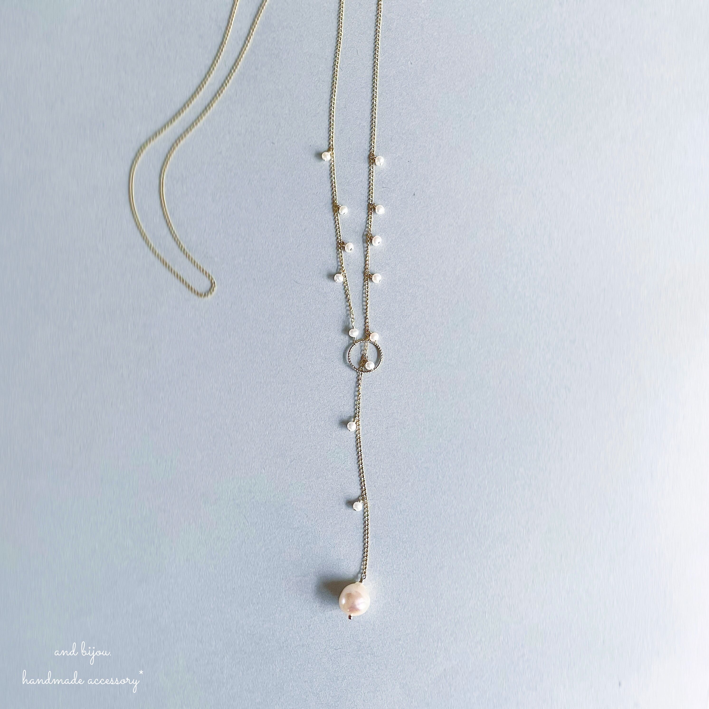 ◆ 14kgf あこやバロックパール ラリエットネックレス