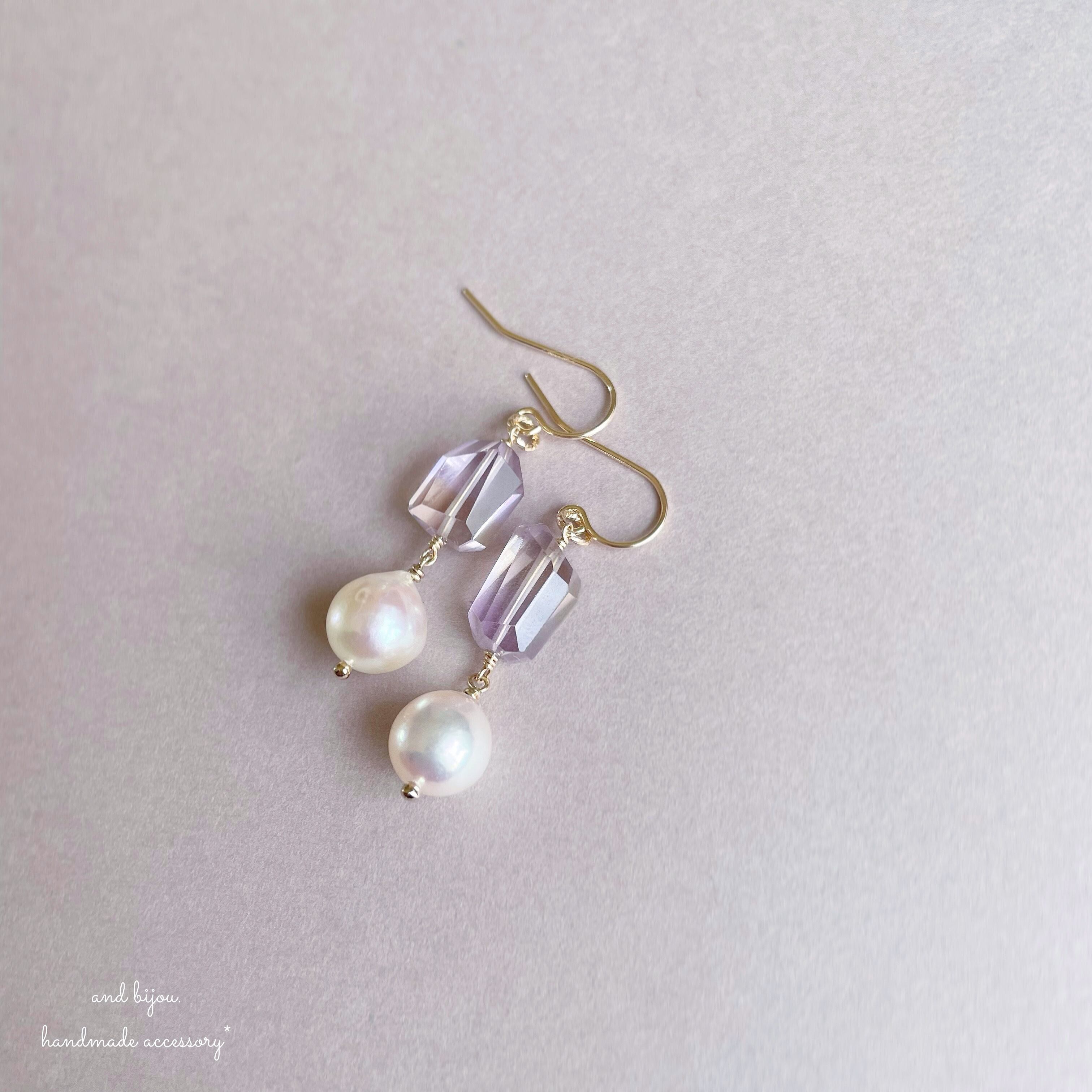 ◆ 14kgf アメトリン × あこや真珠 ミディピアス