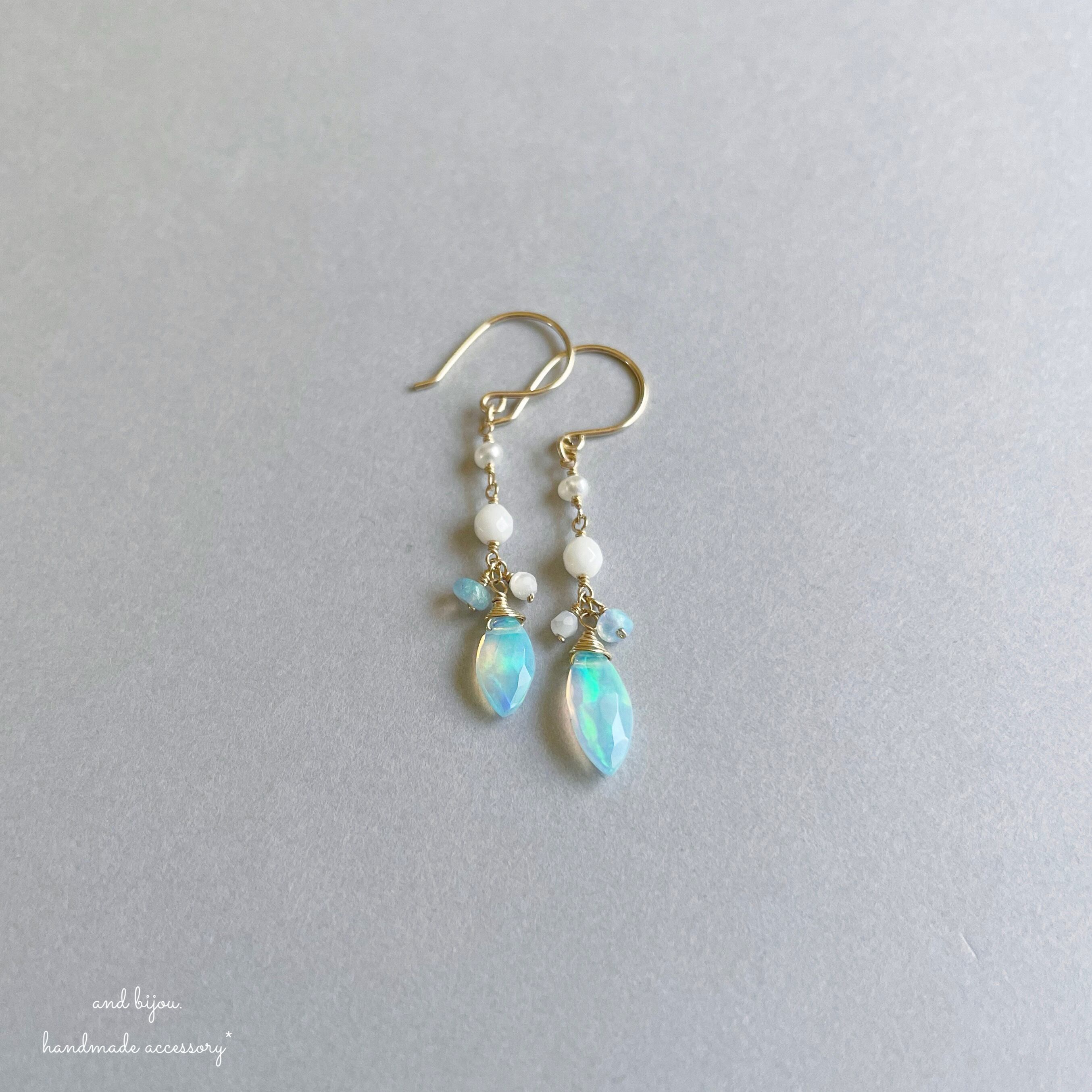 14kgf カラーオパール × ホワイトカラー ラグーンピアス/イヤリング