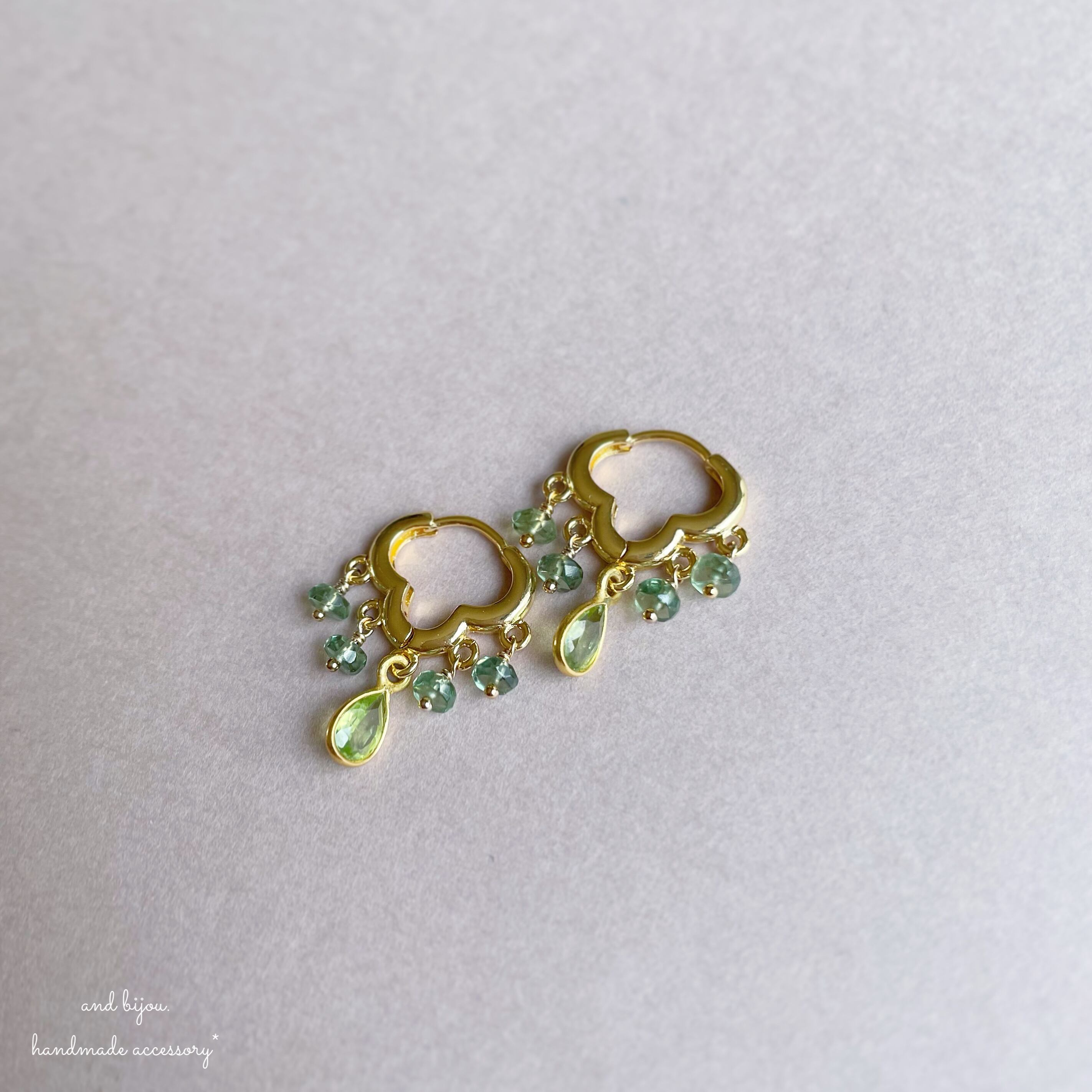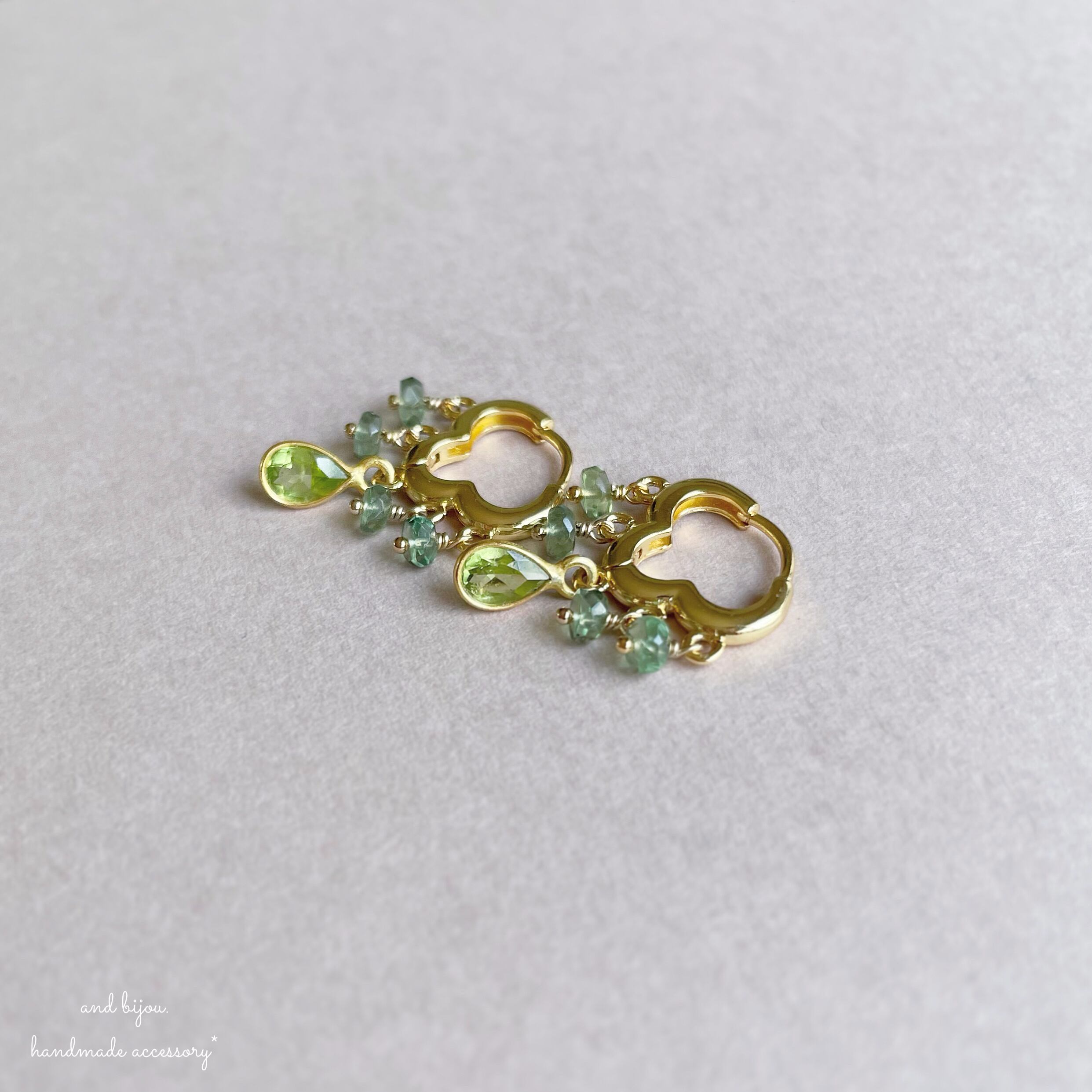 18kgp "moroccan" ペリドット × グリーンアパタイト モロッカンピアス